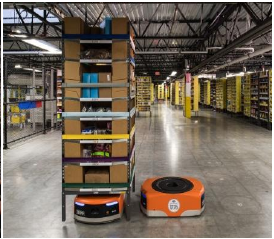 国外甚至说是世界上最成功的AGV莫过于亚马逊的Kiva机器人,如图1.1所示。Kiva机器人的工作效率非常之高,它能在短短的1小时内完成300件货物的运输工作,大大降低了物流运输的成本,而且它的准确性也相当之高,高达99.99%。Kiva机器人是根据地上的二维码进行导航,其顶部的升降机构能抬起720磅的货物[5]。