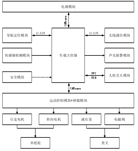 - 构建了无人物流车的总体框架,简要介绍了数字化工厂中自动化仓储系统的架构,各个部分的功能与联系,并将研究方向定位在底层控制系统上。分析设计指标,对舵轮驱动单元进行计算与选型,并建立了无人物流车车载控制系统架构。