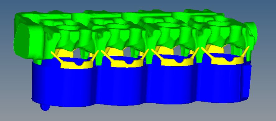 在动力系统开发中,由数值计算理论和计算机高性能计算技术引导的模拟仿真实验方法已成为应用主流。计算机辅助技术(CAE)在产品开发流程中起到了十分重要的作用,该技术可以对产品的结构强度,运行可靠性,寿命分析进行仿真,从而可以在产品开发过程中了解当前设计的不足和缺陷,并节省实验研究和样本生产成本,大大缩短产品开发周期。以有限元法(FEM)为代表的CAE分析技术应用广泛,相关的工业软件繁多。本文运用有限元方法对缸盖-缸垫-机体系统进行一系列热流场分析。
