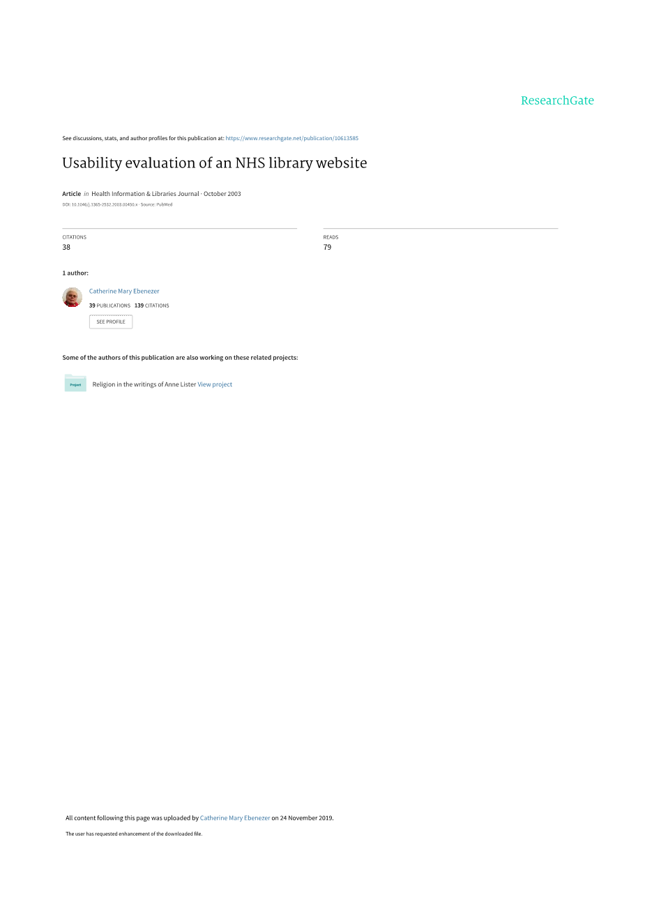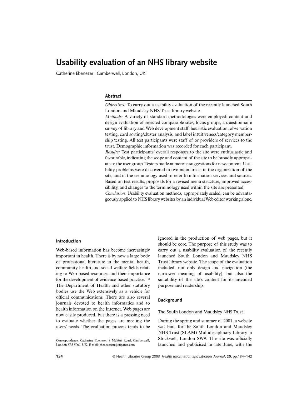 结论:使用可用性评估方法,适当地扩展,可以由一个单独的网络编辑,通过对网站的分析,将其应用于NHS图书馆网站。
