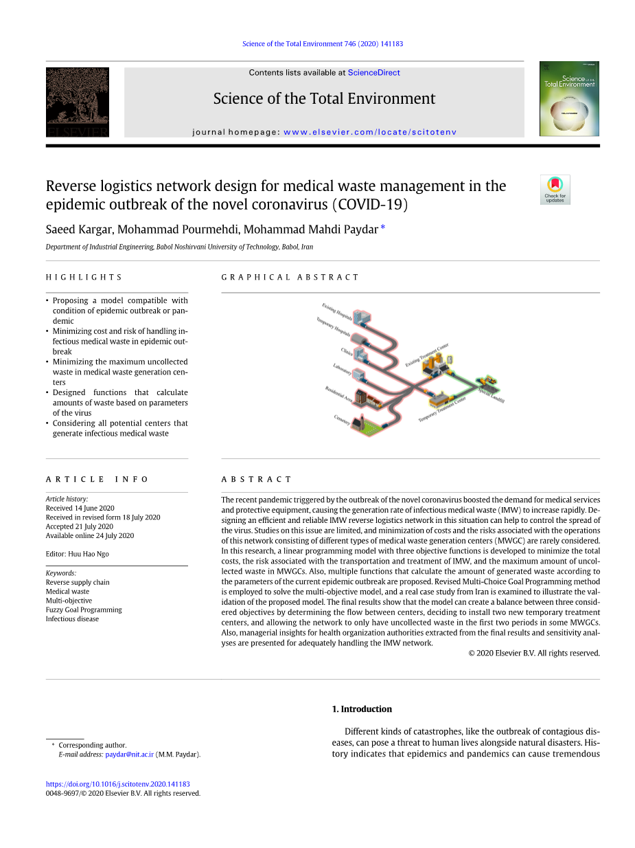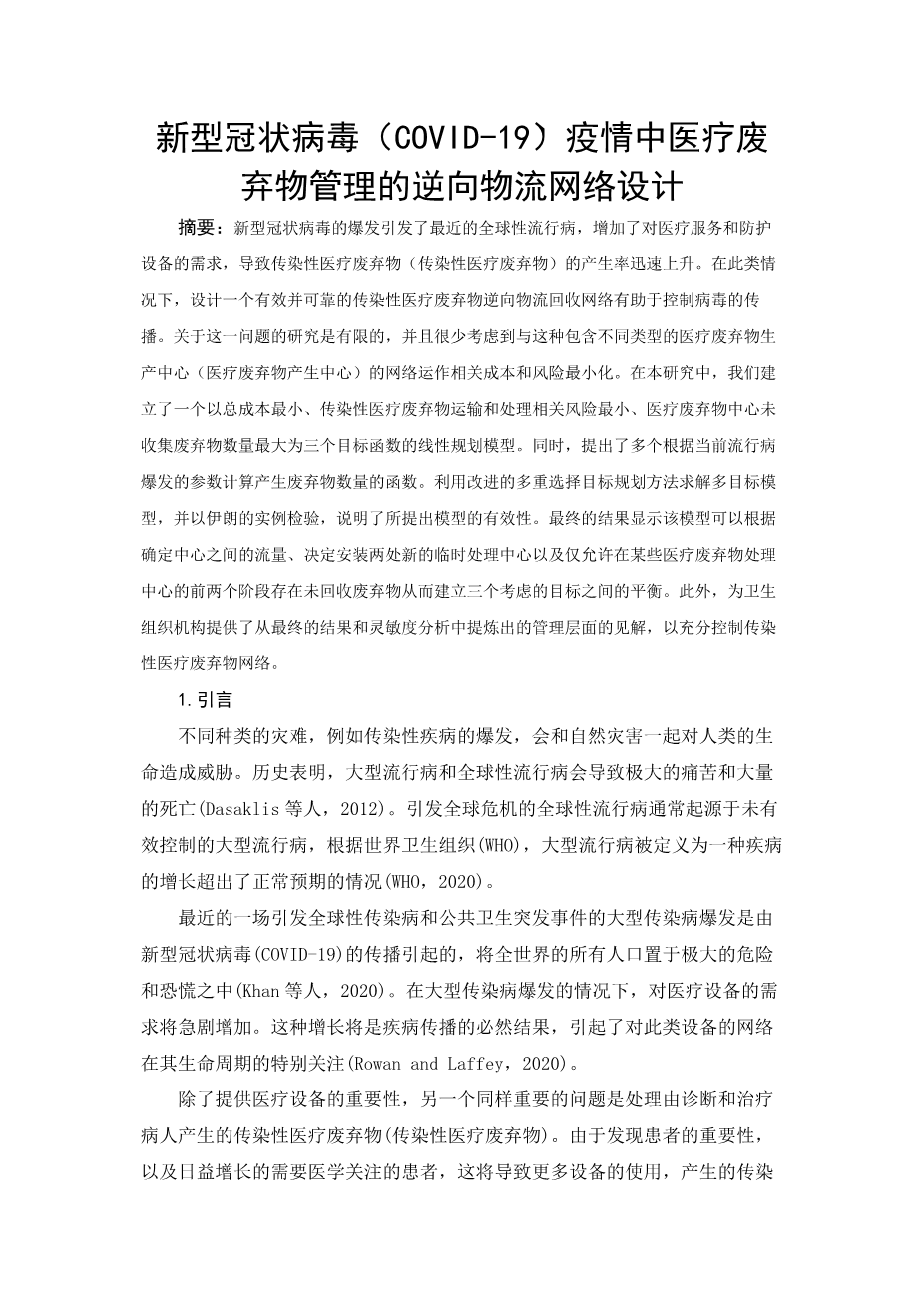 新型冠状病毒(COVID-19) 疫情中医疗废 弃物管理的逆向物流网络设计外文翻译资料