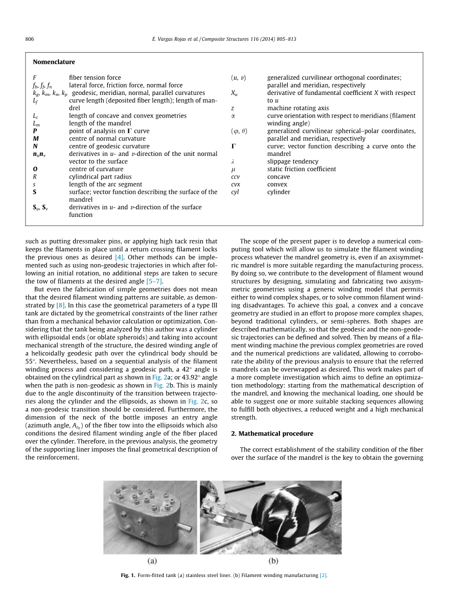 本文使用一种数字计算工具,其将允许我们模拟纤维缠绕过程,而不考虑心轴几何形状,即使轴对称心轴在制造过程中更合适。我们可以通过使用通用绕组模型设计,模拟和制造两个轴对称几何形状来研究纤维缠绕问题,所述通用绕组模型可允许缠绕复杂形状的构件,以及解决常见的细丝缠绕的缺点。为了实现这个目标,需要研究凸和凹两种几何形状,以适应非传统圆柱体或半球体等更复杂的形状。其在数学上的描述,使得定义和求解测地轨迹和非测地轨迹成为可以。然后,通过纤维缠绕机,先前的复杂几何形状被粗纱缠绕从而验证之前的数值预测,证实先前的分析,以确保所提及的芯棒可以根据需要被缠绕。这项工作只是一个更完整的研究的一部分,旨在寻求一个优化方法:通过心轴的数学描述推算机械负载,人们应该能够建立一个或多个合适的数学模型,从而实现这两个目标,即减轻重量和提高机械强度。