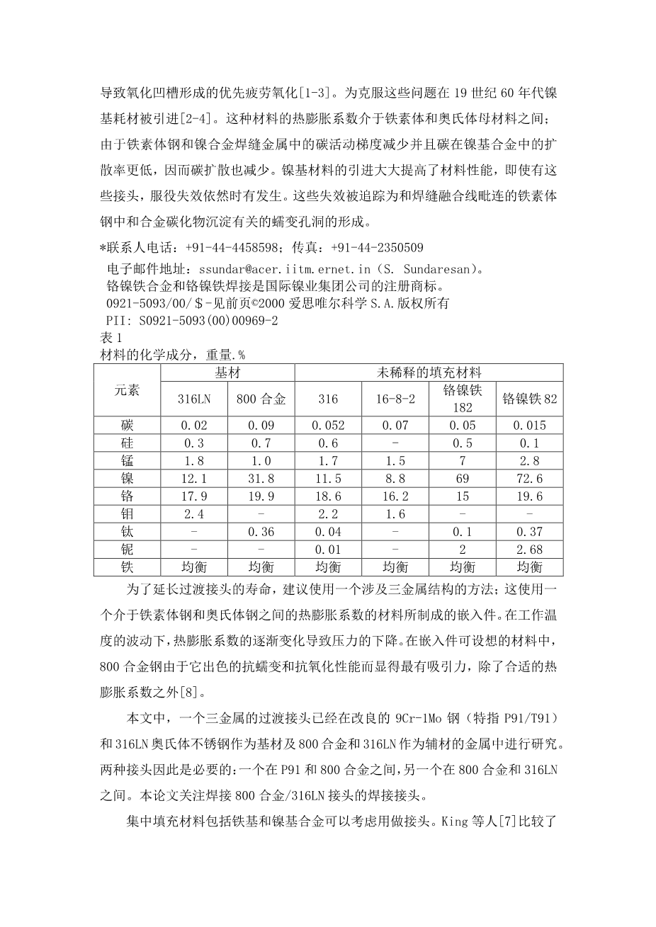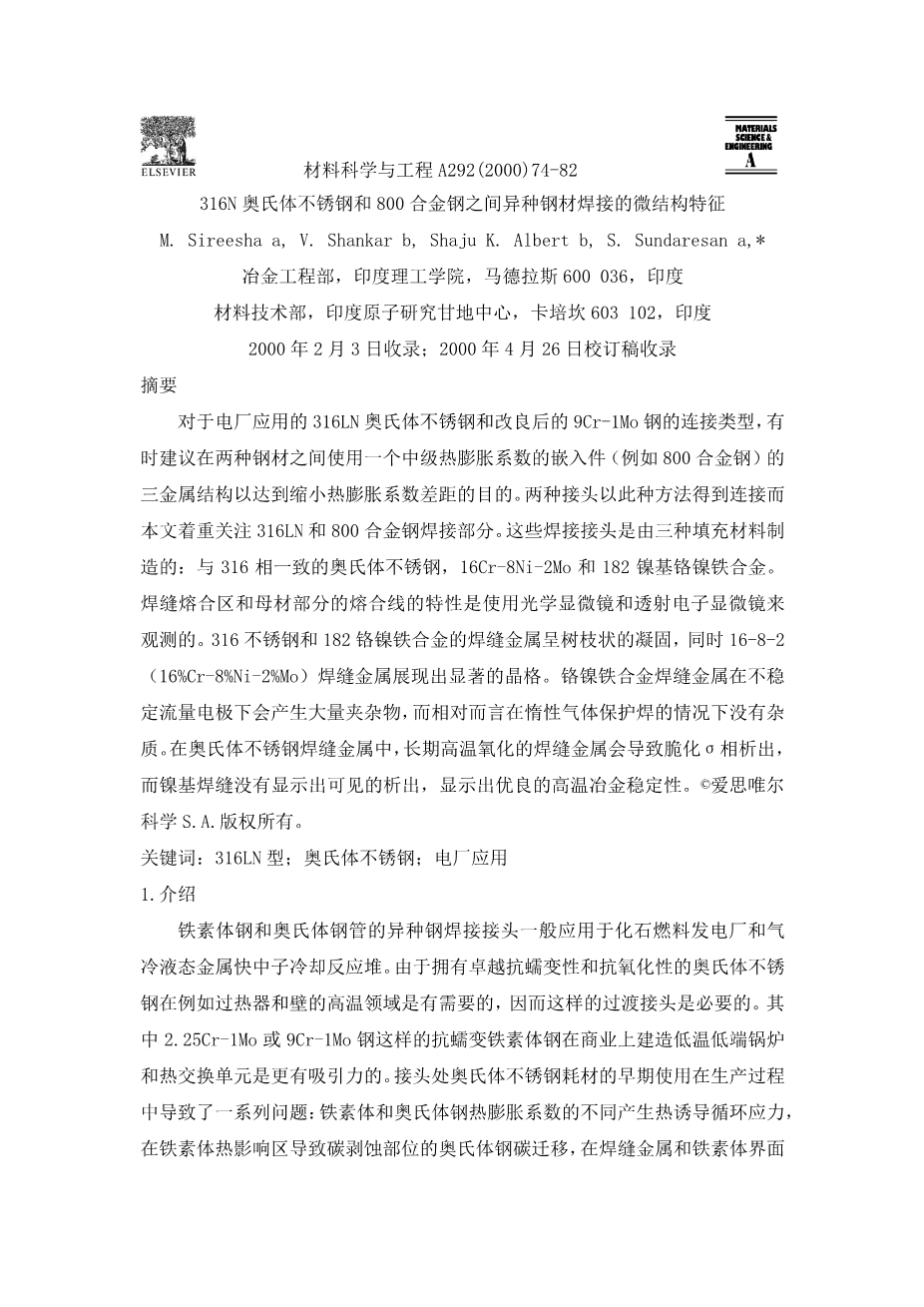 316N奥氏体不锈钢和800合金钢之间异种钢材焊接的微结构特征外文翻译资料