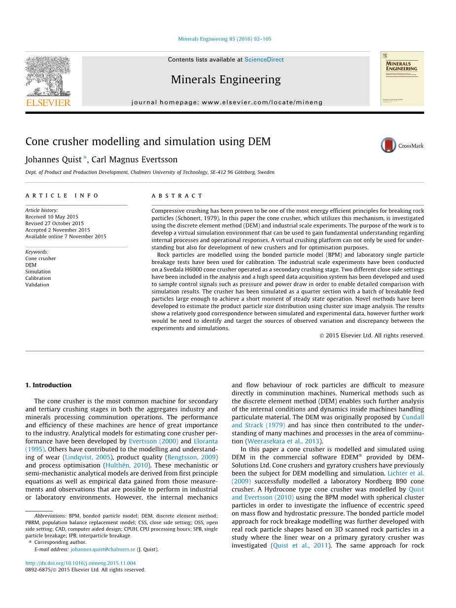 基于DEM的圆锥破碎机的建模和模拟外文翻译资料