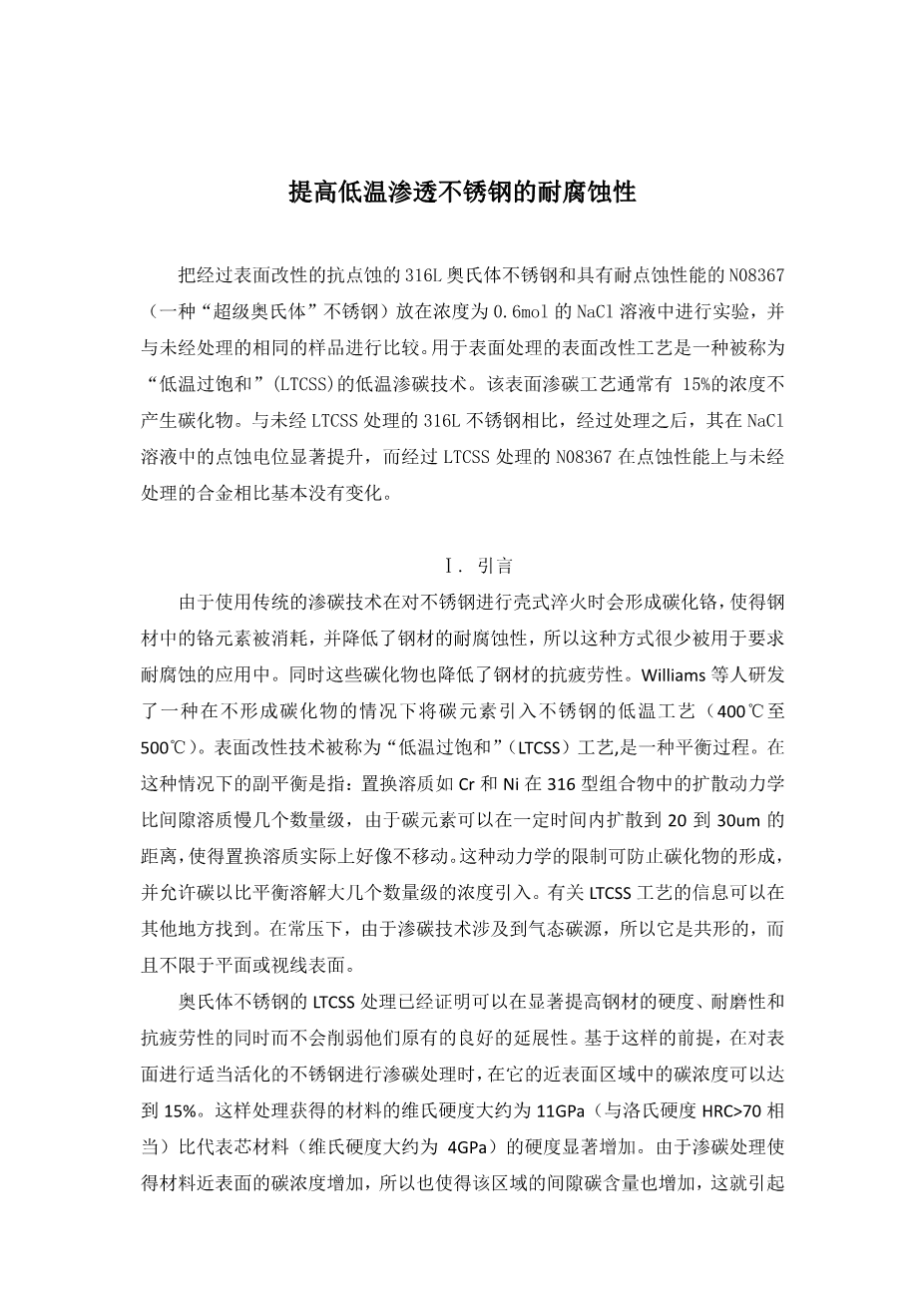 提高低温渗透不锈钢的耐腐蚀性外文翻译资料