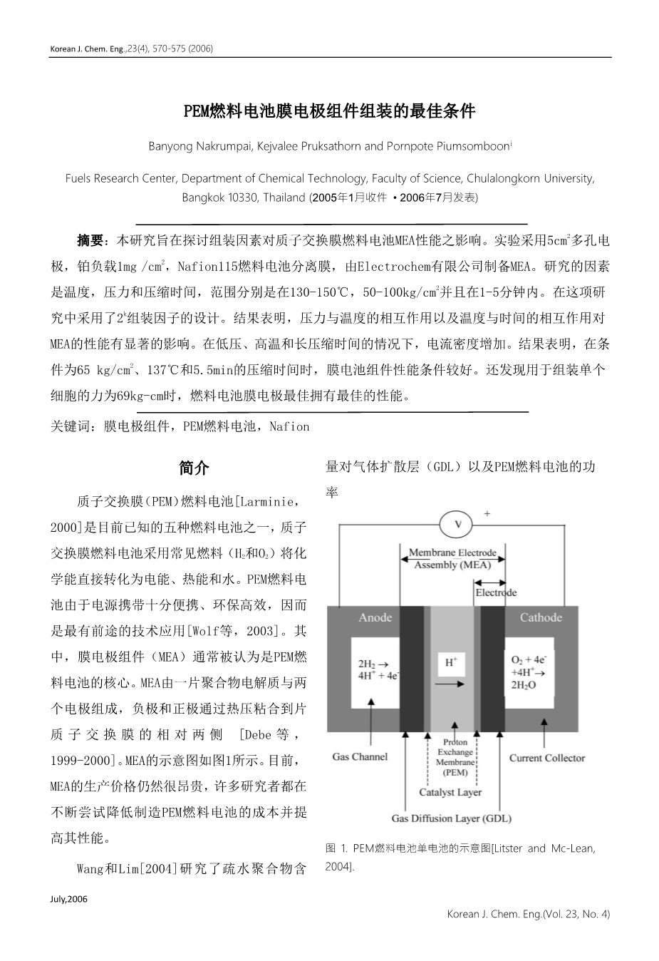 PEM燃料电池膜电极组件组装的最佳条件外文翻译资料