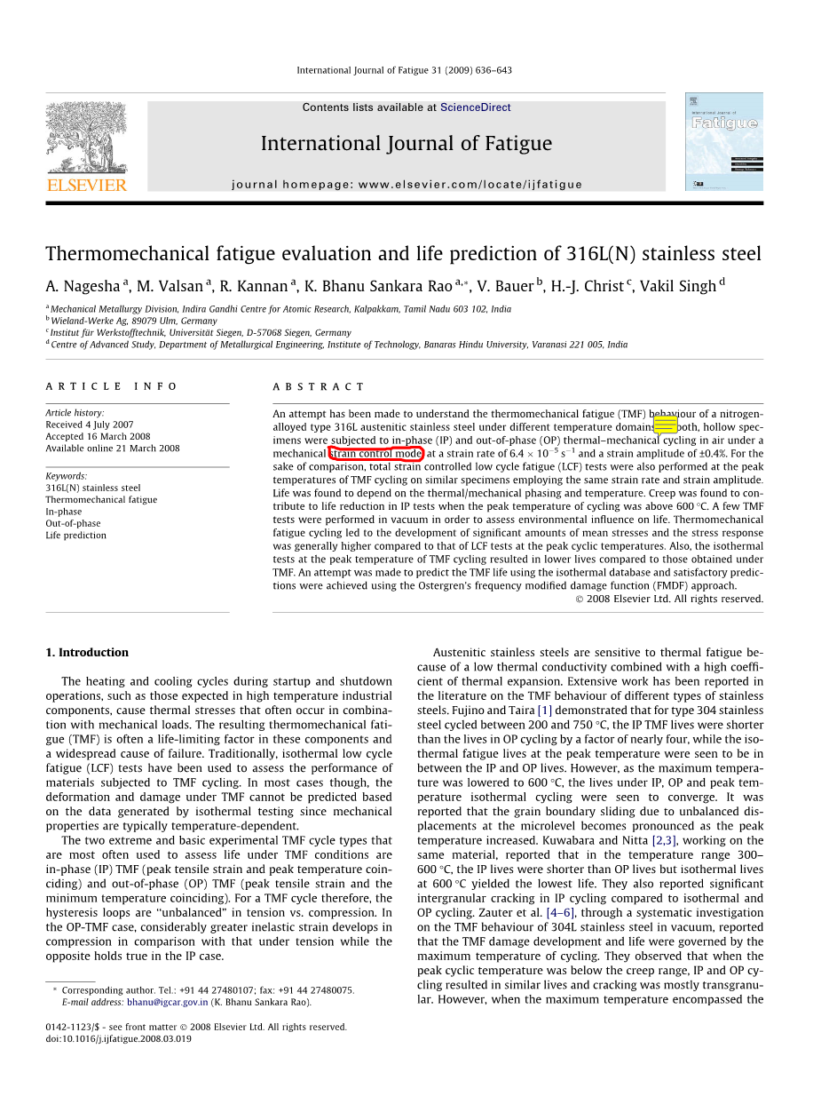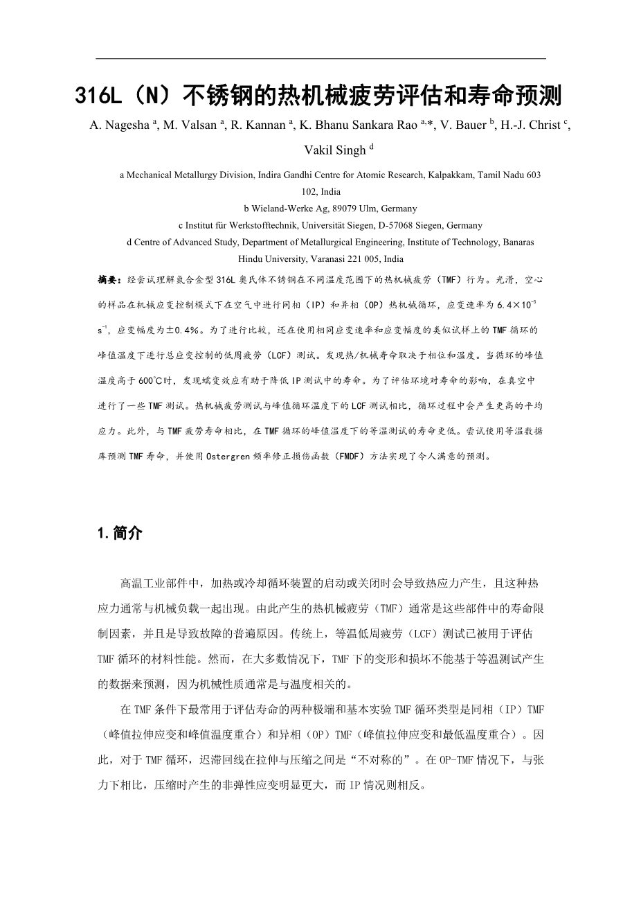 316L (N)不锈钢的热机械疲劳评估和寿命预测外文翻译资料