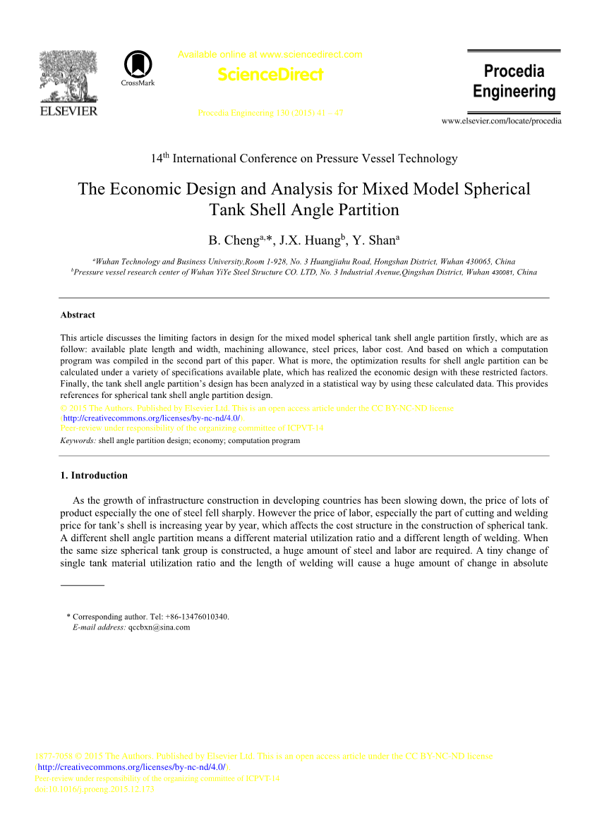 混合模型球罐壳体角度分割经济设计和分析外文翻译资料