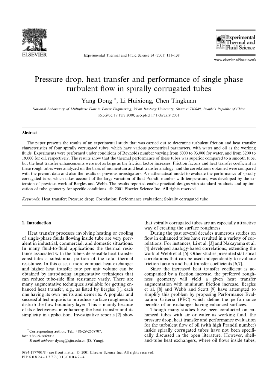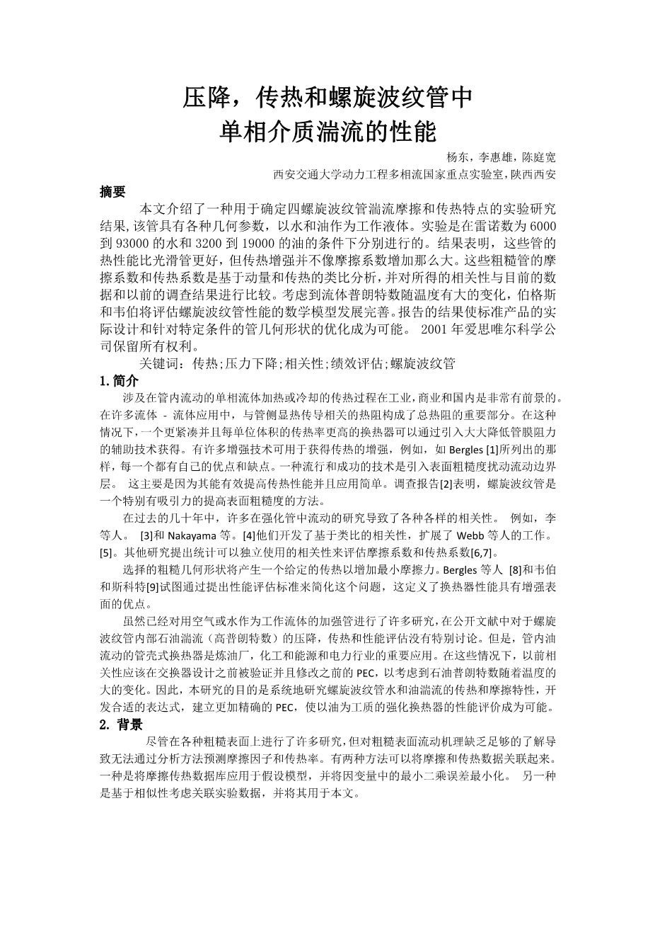 压降,传热和螺旋波纹管中单相介质湍流的性能外文翻译资料