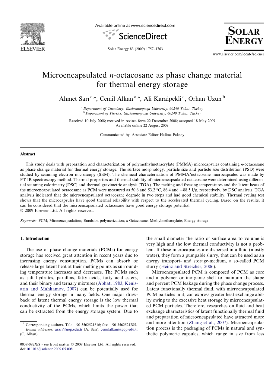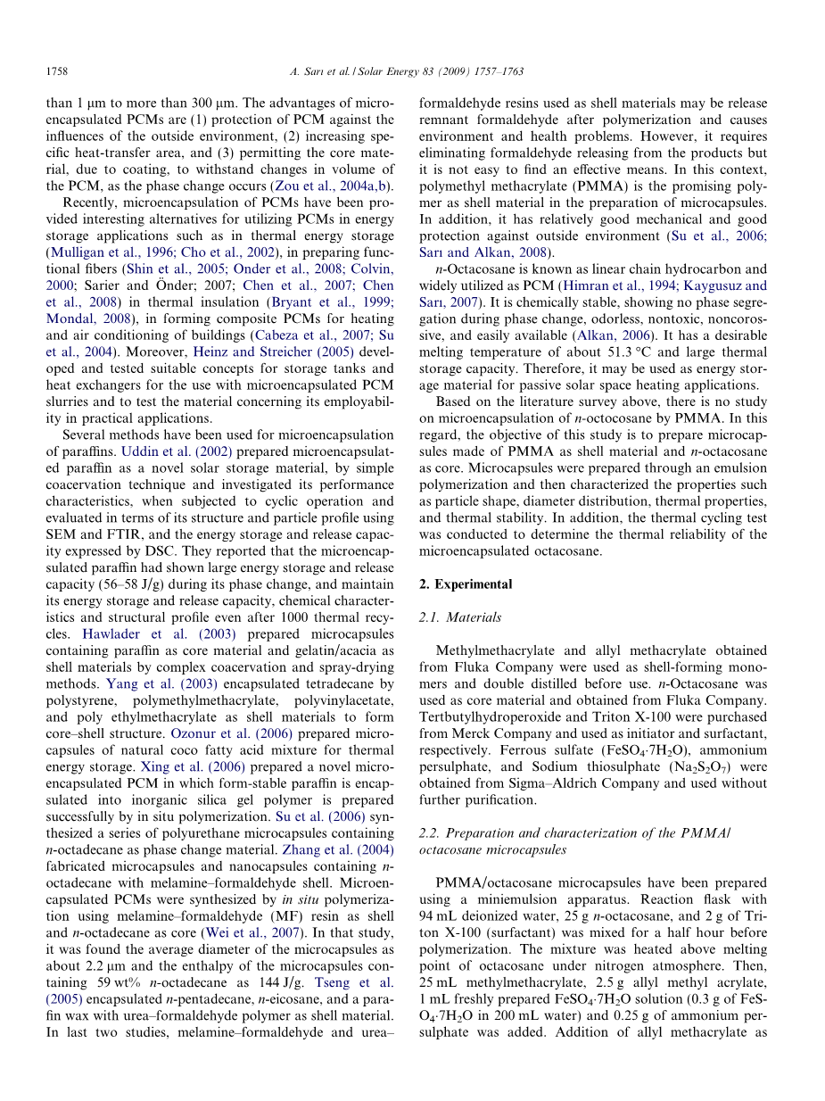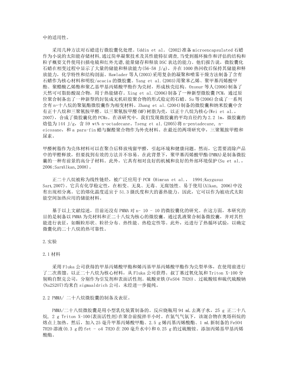 作为相变材料用于热能存储的正二十八烷微胶囊外文翻译资料