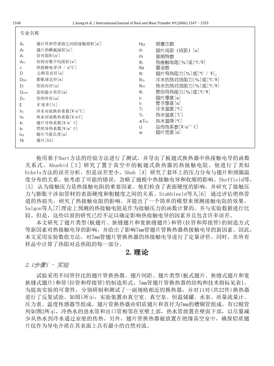 用7 mm管进行翅片管换热器内热接触电导的研究外文翻译资料
