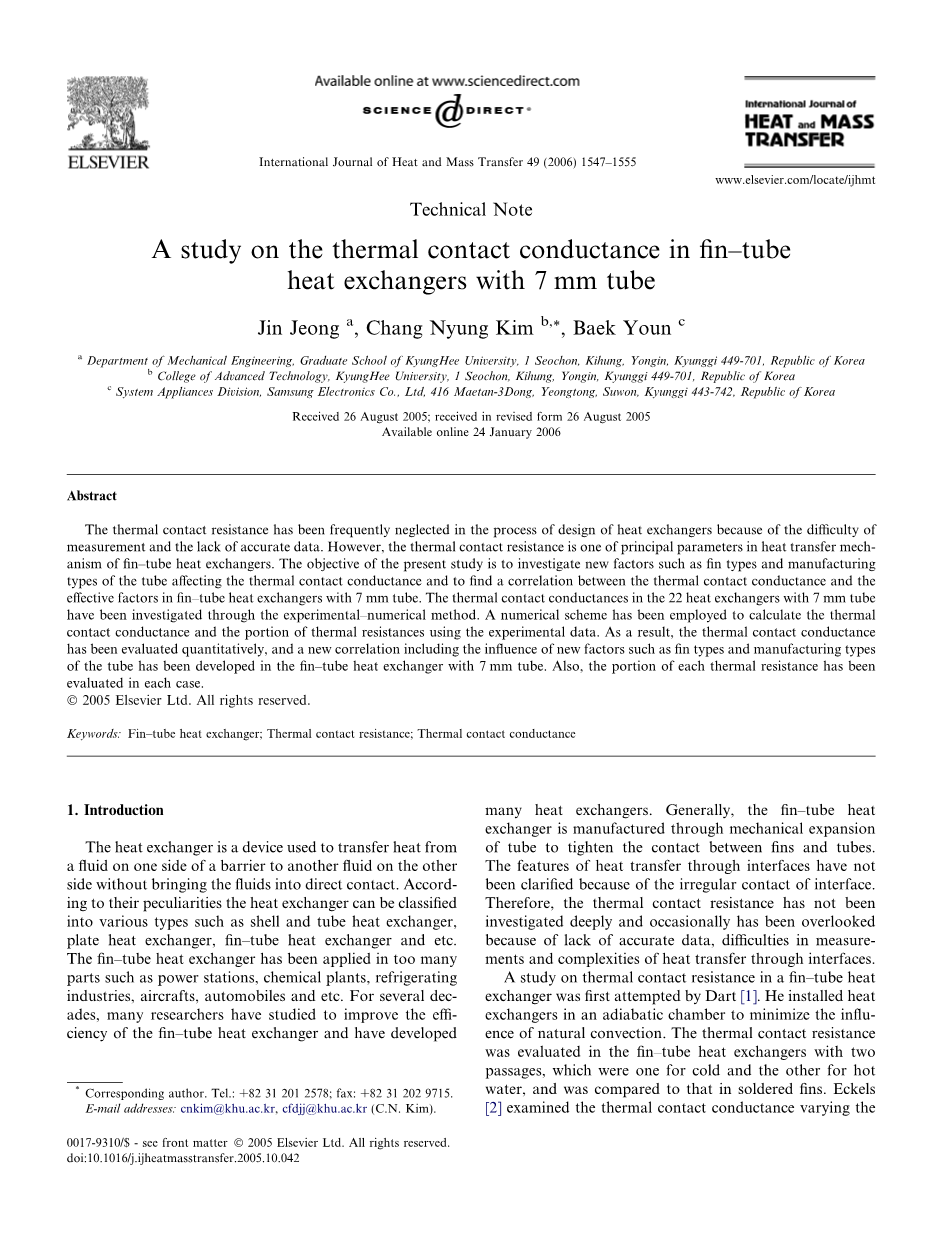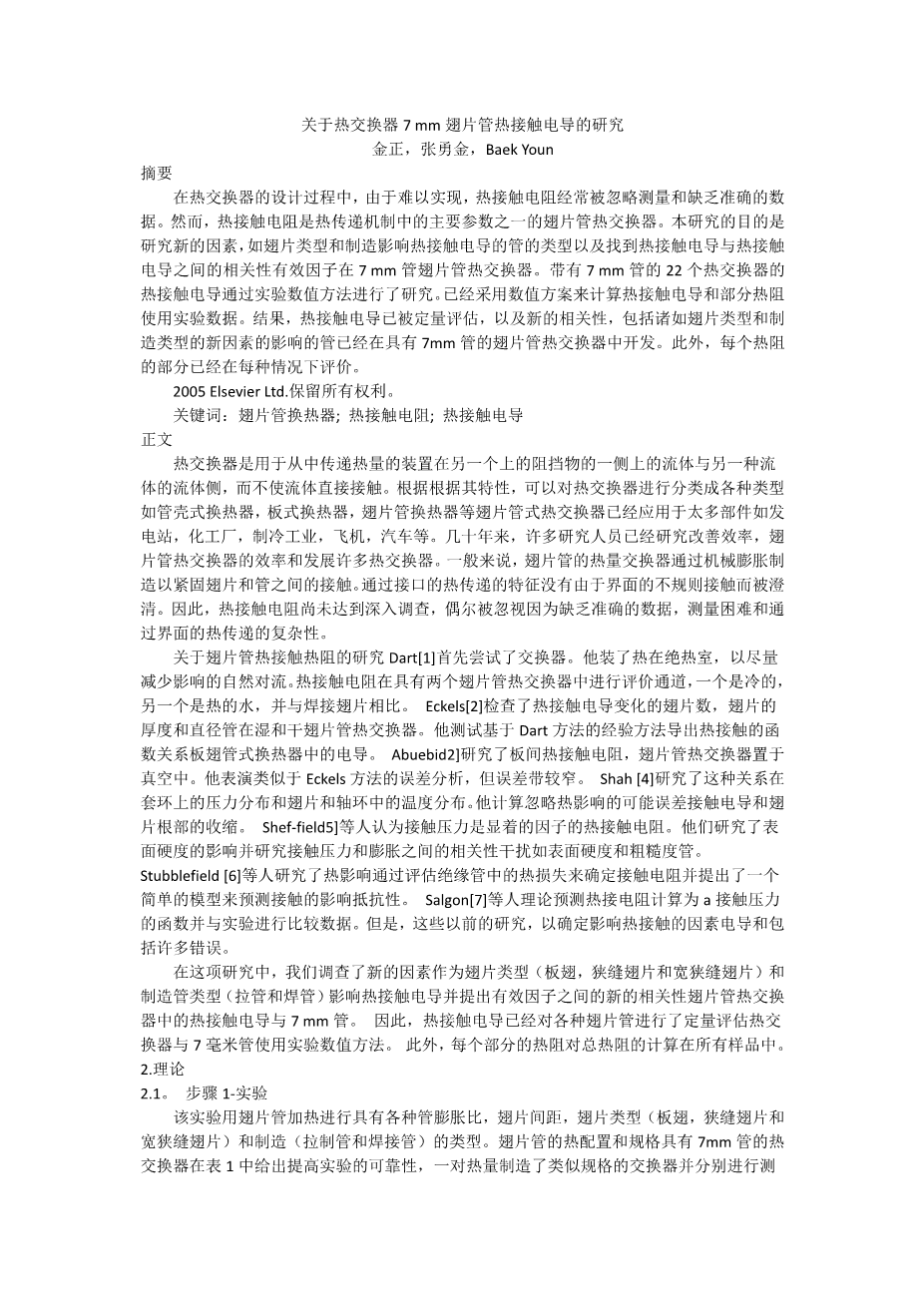关于热交换器7mm翅片管热接触电导的研究外文翻译资料