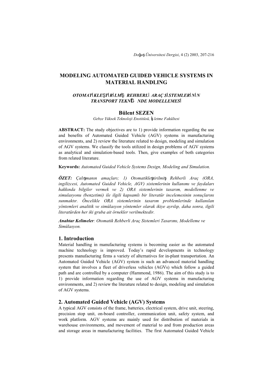 物料搬运中的自动引导车辆系统建模外文翻译资料
