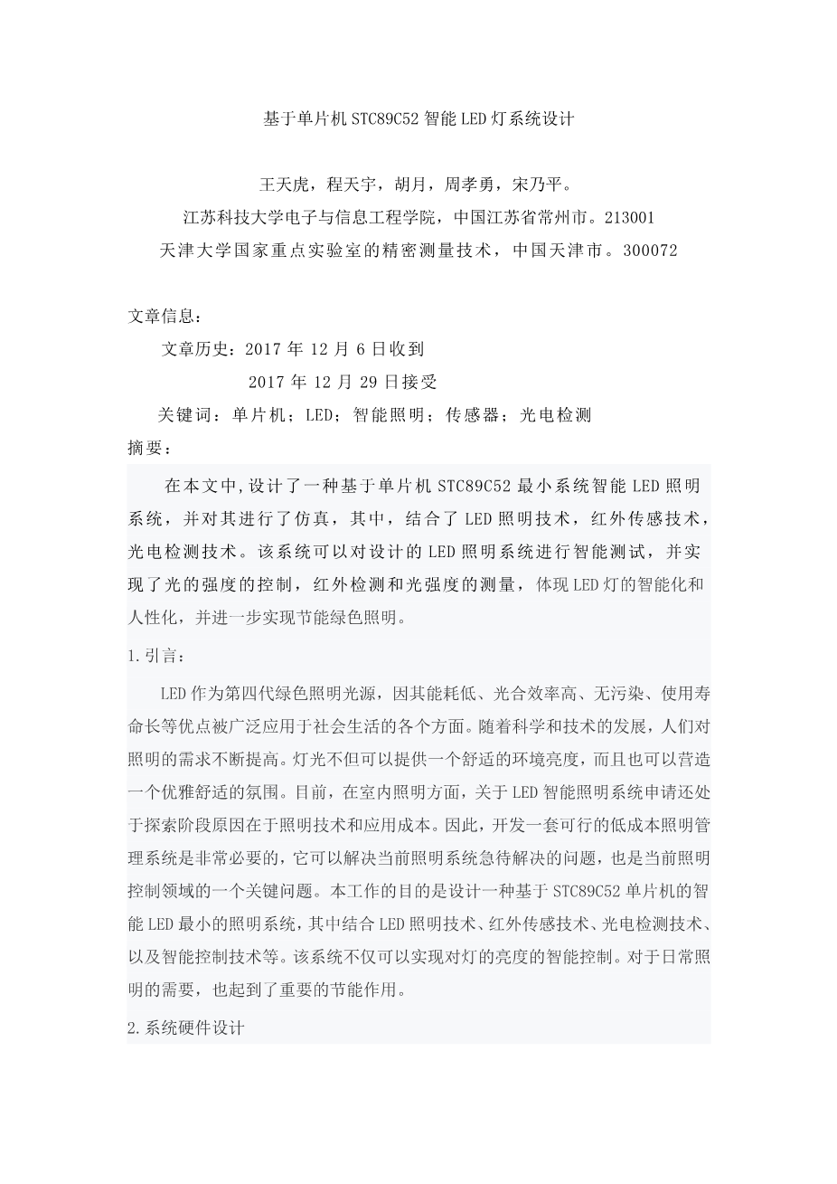 基于单片机STC89C52智能LED灯系统设计外文翻译资料