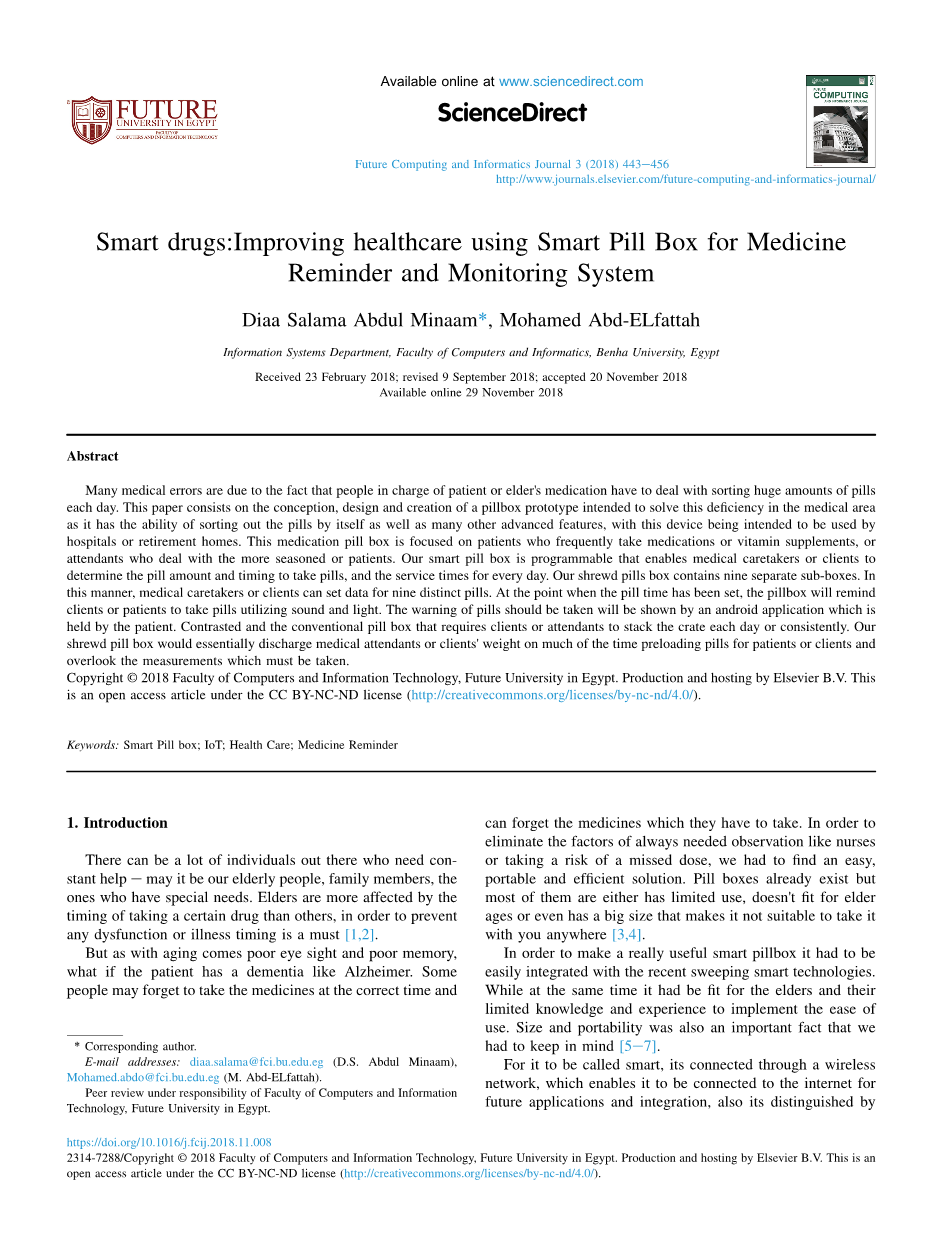 在参考文献[20]中,开发了一种药物安全性,以避免老年人服用片剂时的混淆提出了一种具有提醒和确认功能的智能药盒。拟议的药盒可以减少家庭成员确保正确和及时消费药品的责任。因为建议的药箱包含对用户的特定时间的警报声音,实时时钟提供连续的时间作为输出。