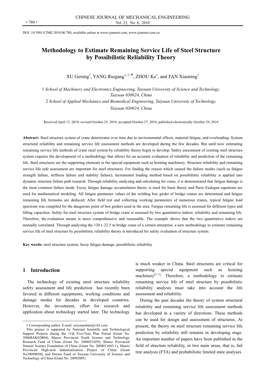 现存的安全评估和寿命预测技术几十年来一直被用于不同的设备,工作条件和损坏模式。然而,随着后来的投资、研究工作和技术应用发展。这种技术在中国要远远落后。钢结构对例如起重机械之类的特种设备的支持至关重要。因此,一种通过模糊可靠性分析方法来估计钢结构剩余寿命必须考虑到寿命评估和可靠性。