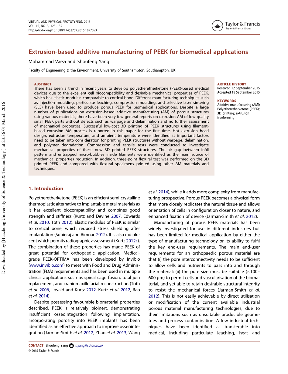 应用于生物医学的聚醚醚酮(PEEK)挤出式增材制造技术研究外文翻译资料