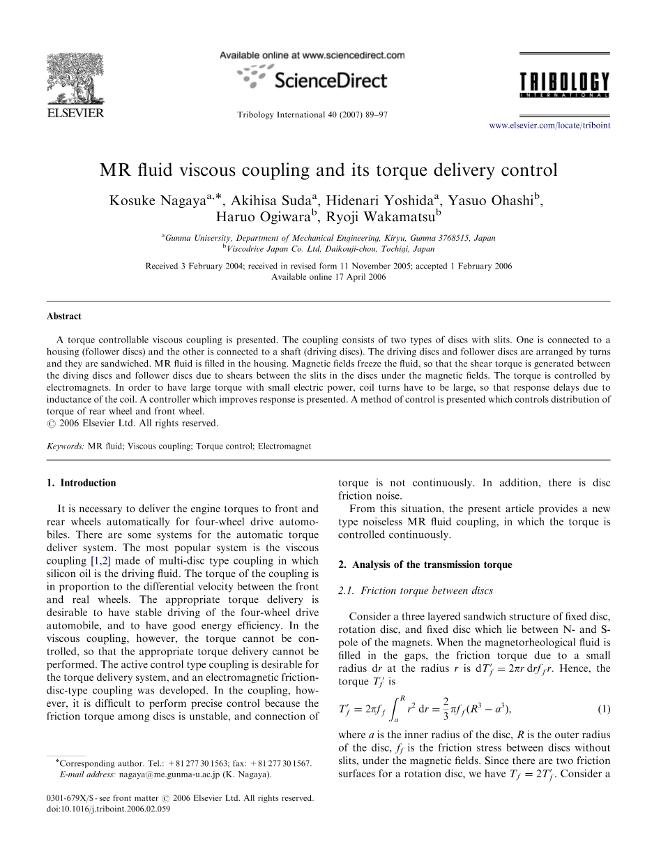 磁流变液黏性联轴器及其扭矩传递控制外文翻译资料