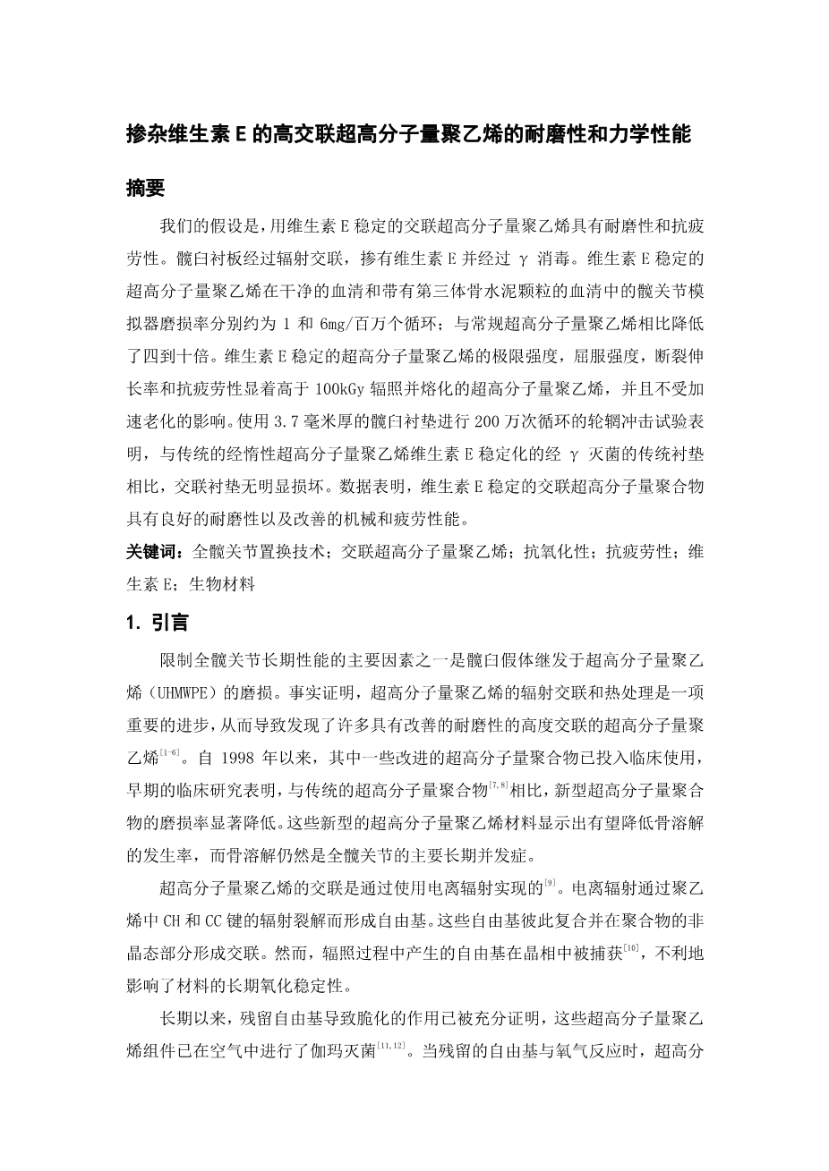 掺杂维生素E的高交联超高分子量聚乙烯的耐磨性和力学性能外文翻译资料