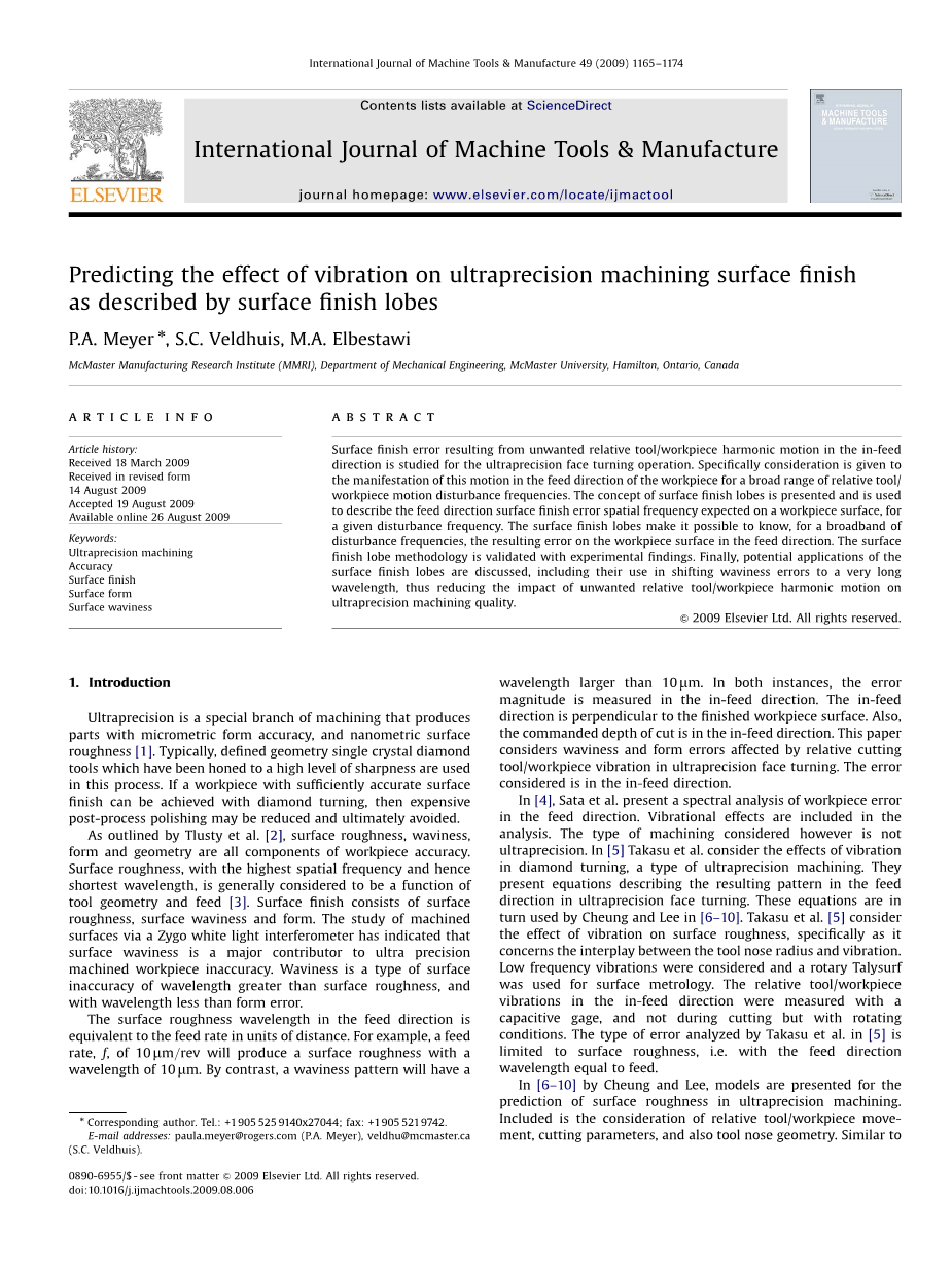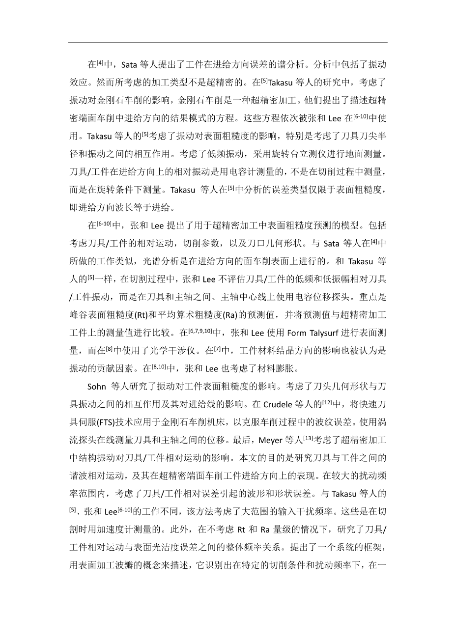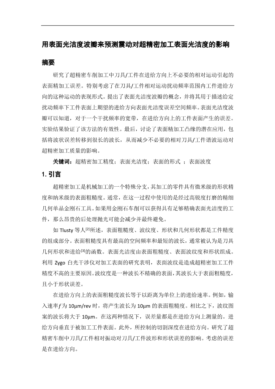 用表面光洁度波瓣来预测震动对超精密加工表面光洁度的影响外文翻译资料