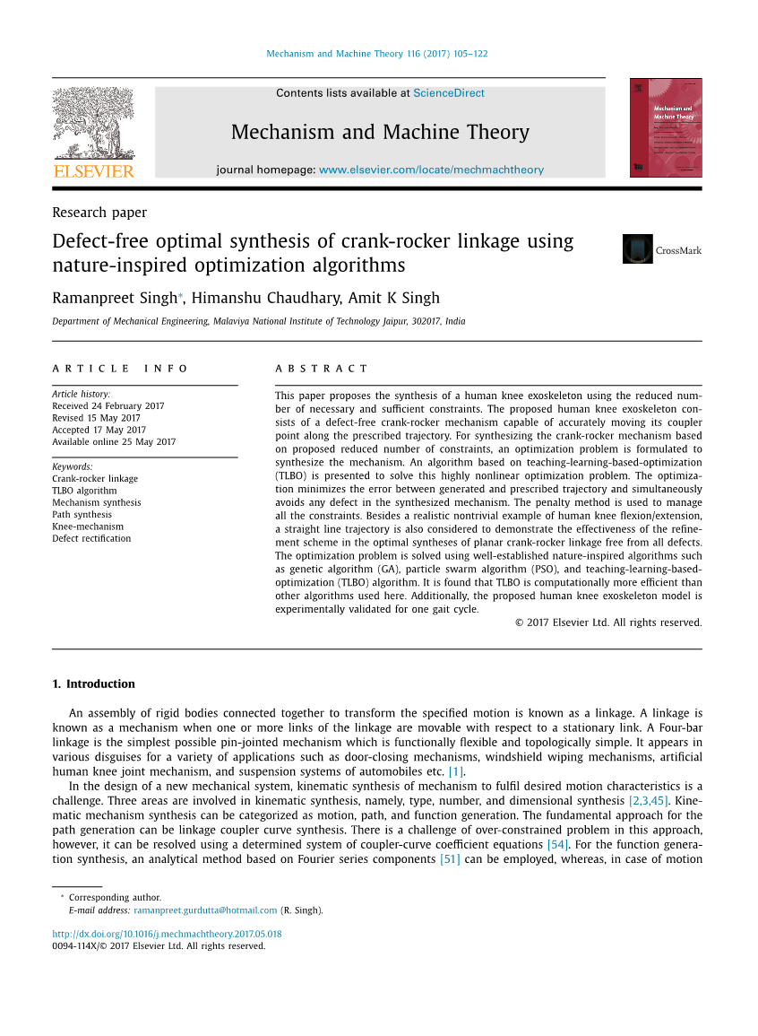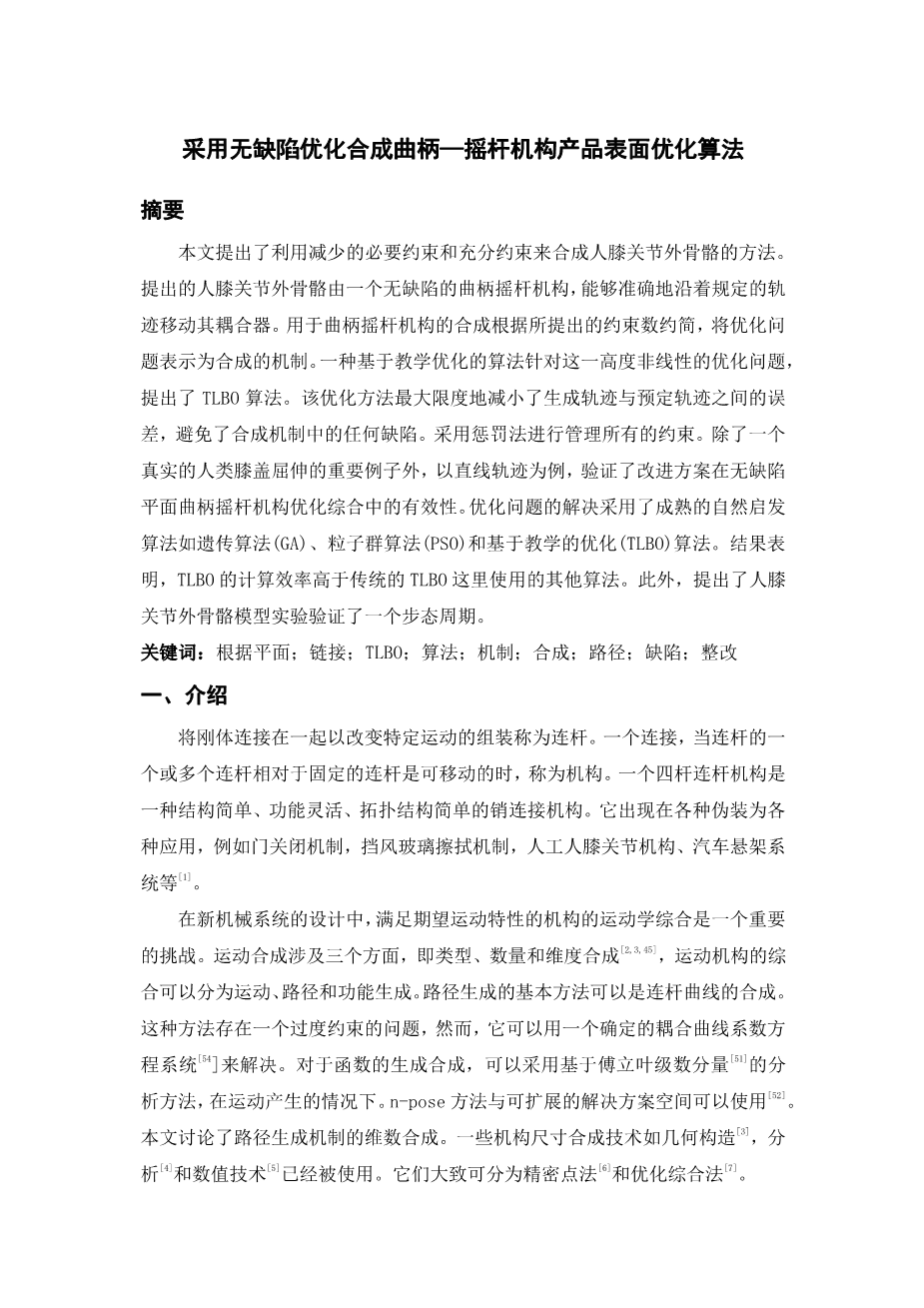 采用无缺陷优化合成曲柄一摇杆机构产品表面优化算法外文翻译资料