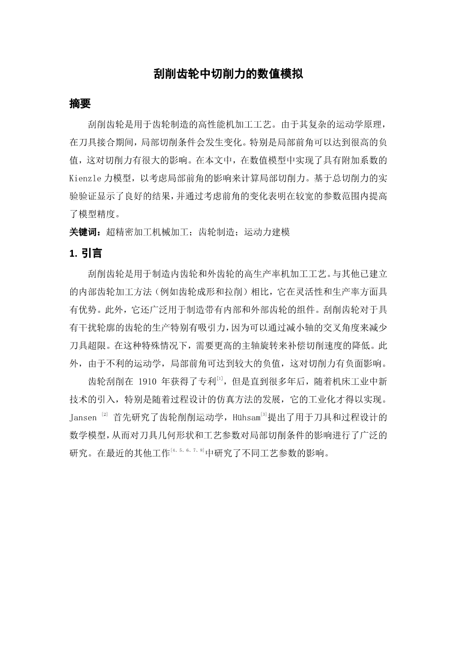 刮削齿轮中切削力的数值模拟外文翻译资料