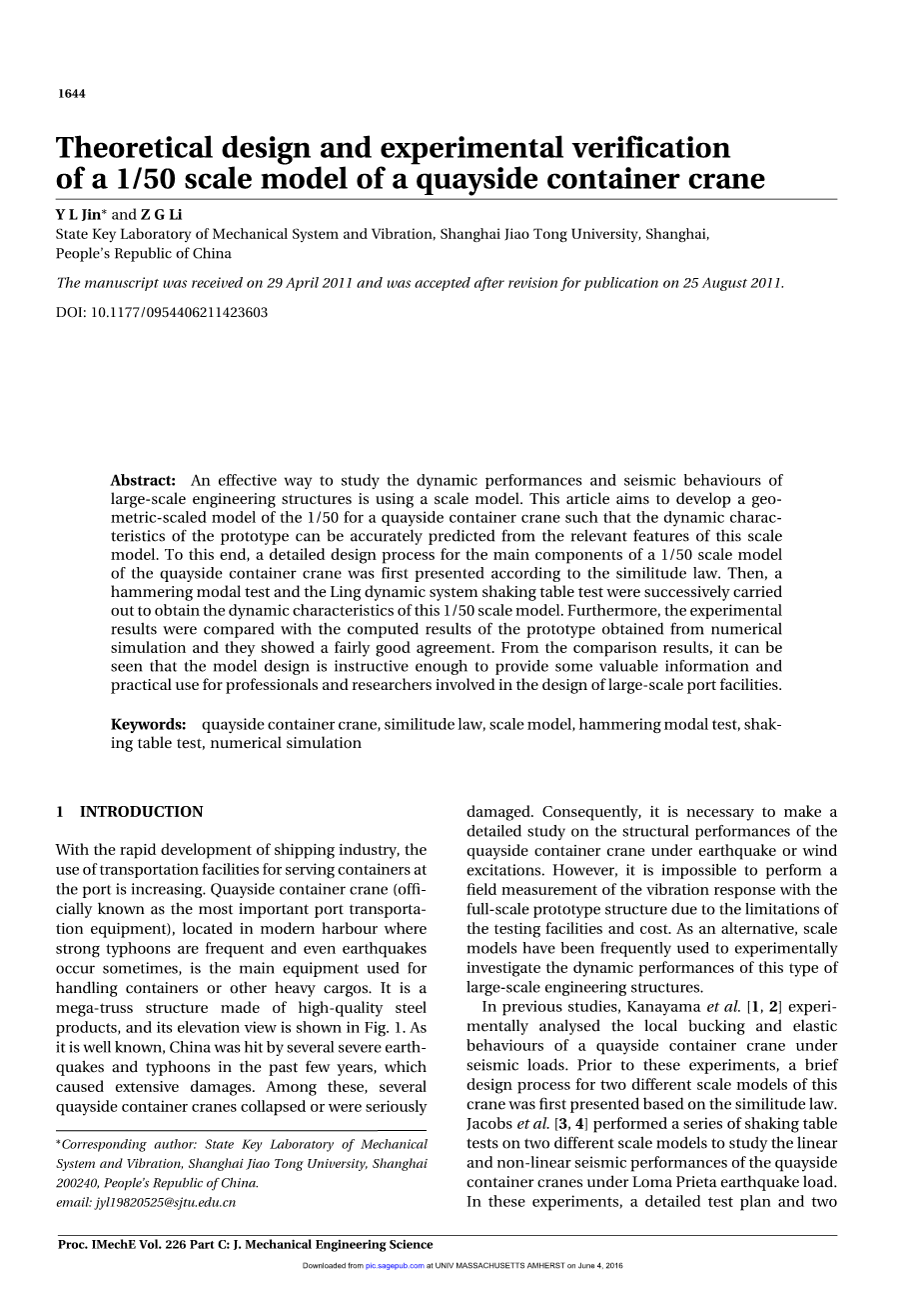 岸桥1/50比例模型的理论设计与试验验证外文翻译资料