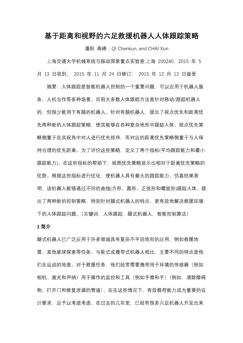 基于距离和视野的六足救援机器人人体跟踪策略外文翻译资料