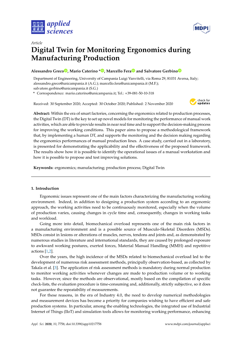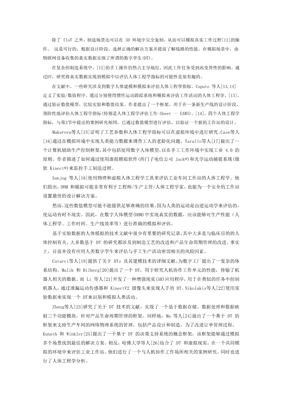 在工业生产过程中进行人类工程学监测的数字孪生外文翻译资料