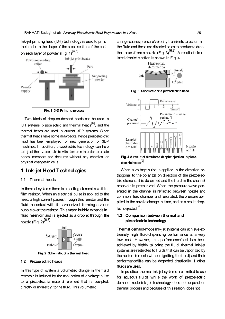 IJH系统可采用压电式和热式两种按需滴头[6],目前的3DP系统采用热封头。由于热封头的一些缺点,压电封头已被应用于新一代3DP机。此外,压电技术可以帮助注入活细胞到重要的纹理,以创造骨骼,成员和假牙没有任何化学或物理变化的细胞。喷墨头技术