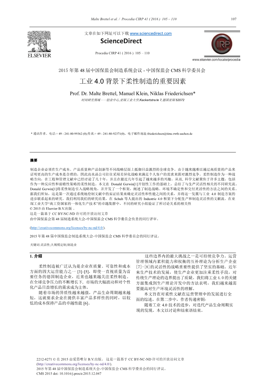 工业4.0背景下柔性制造的重要因素外文翻译资料