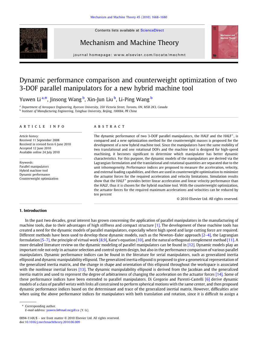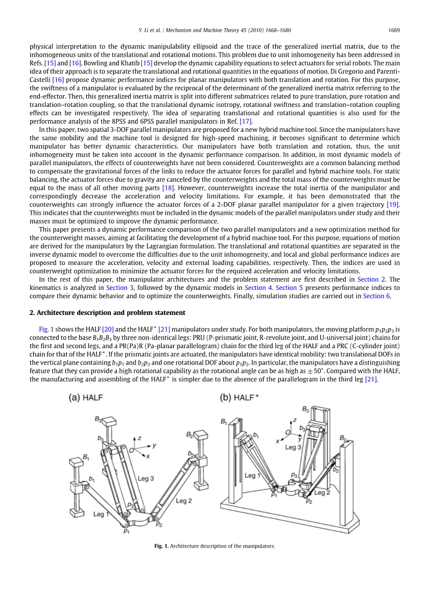 新型混合动力机床两个三自由度并联机构的动态性能比较及配重优化外文翻译资料