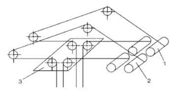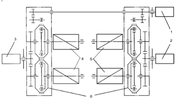 主要为四卷筒牵引式小车,四卷筒牵引式小车方案最初由 Caillard公司提出,现在大致已经发展成熟。图1为四卷筒牵引式小车钢丝绳缠绕系统。图2为传动机构示意图。