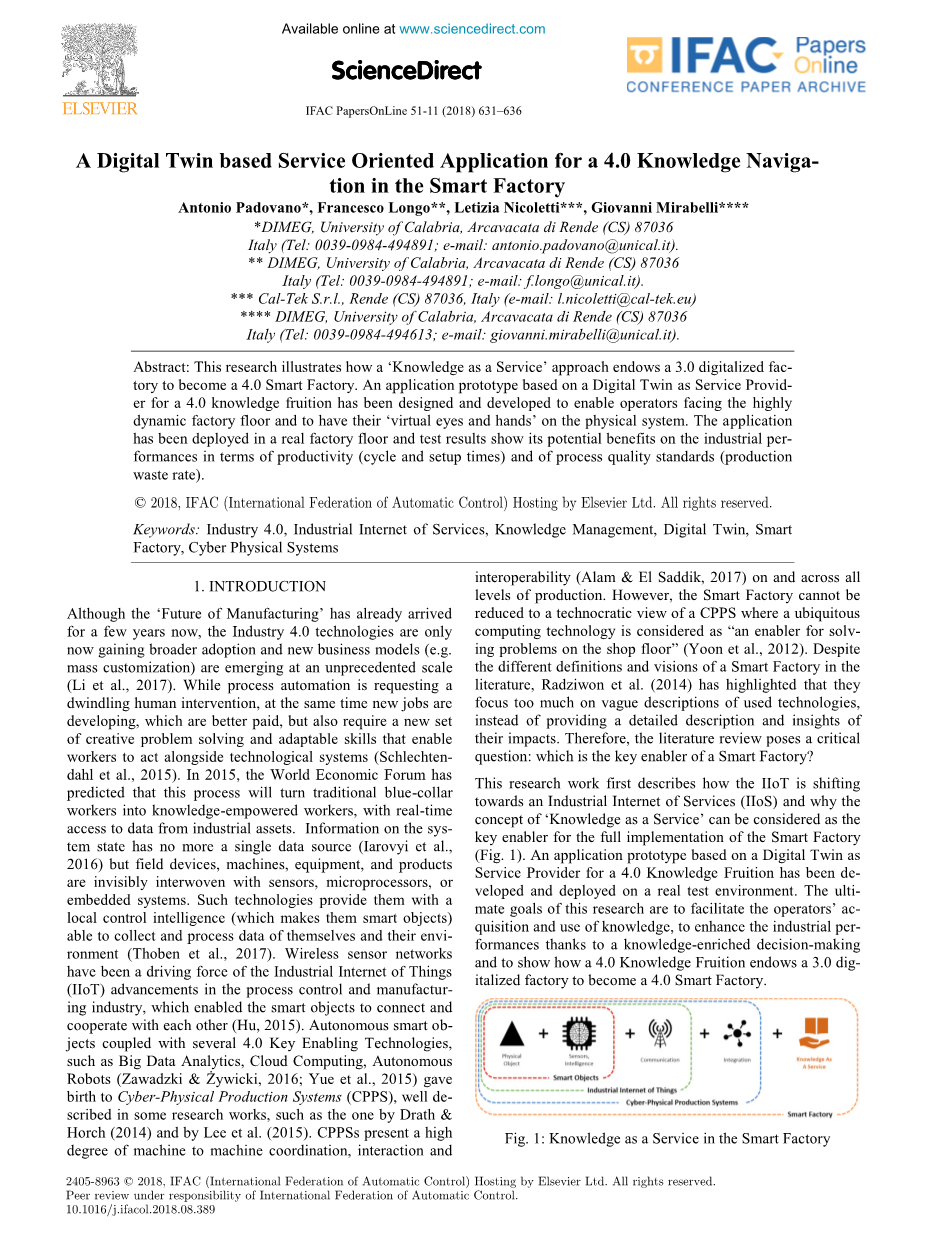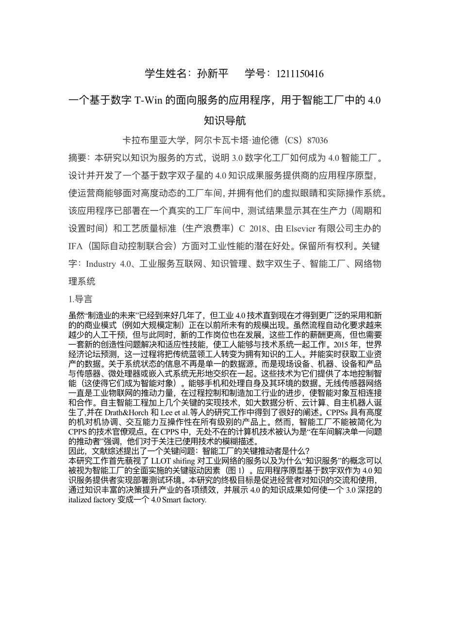 一个基于数字T-Win的面向服务的应用程序,用于智能工厂中的4.0知识导航外文翻译资料