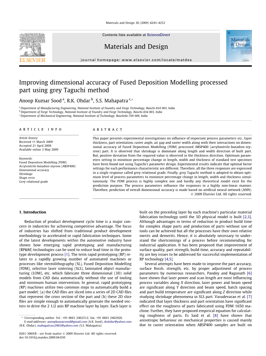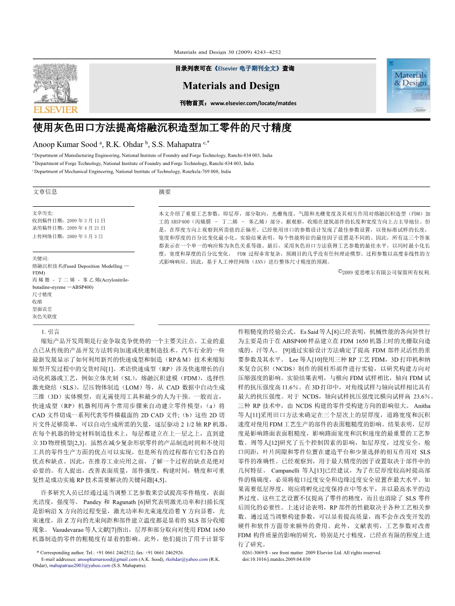 使用灰色田口方法提高熔融沉积造型加工零件的尺寸精度外文翻译资料