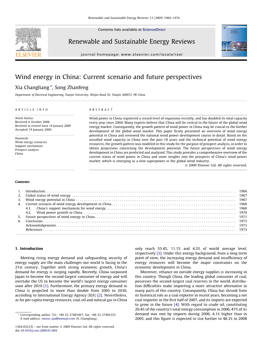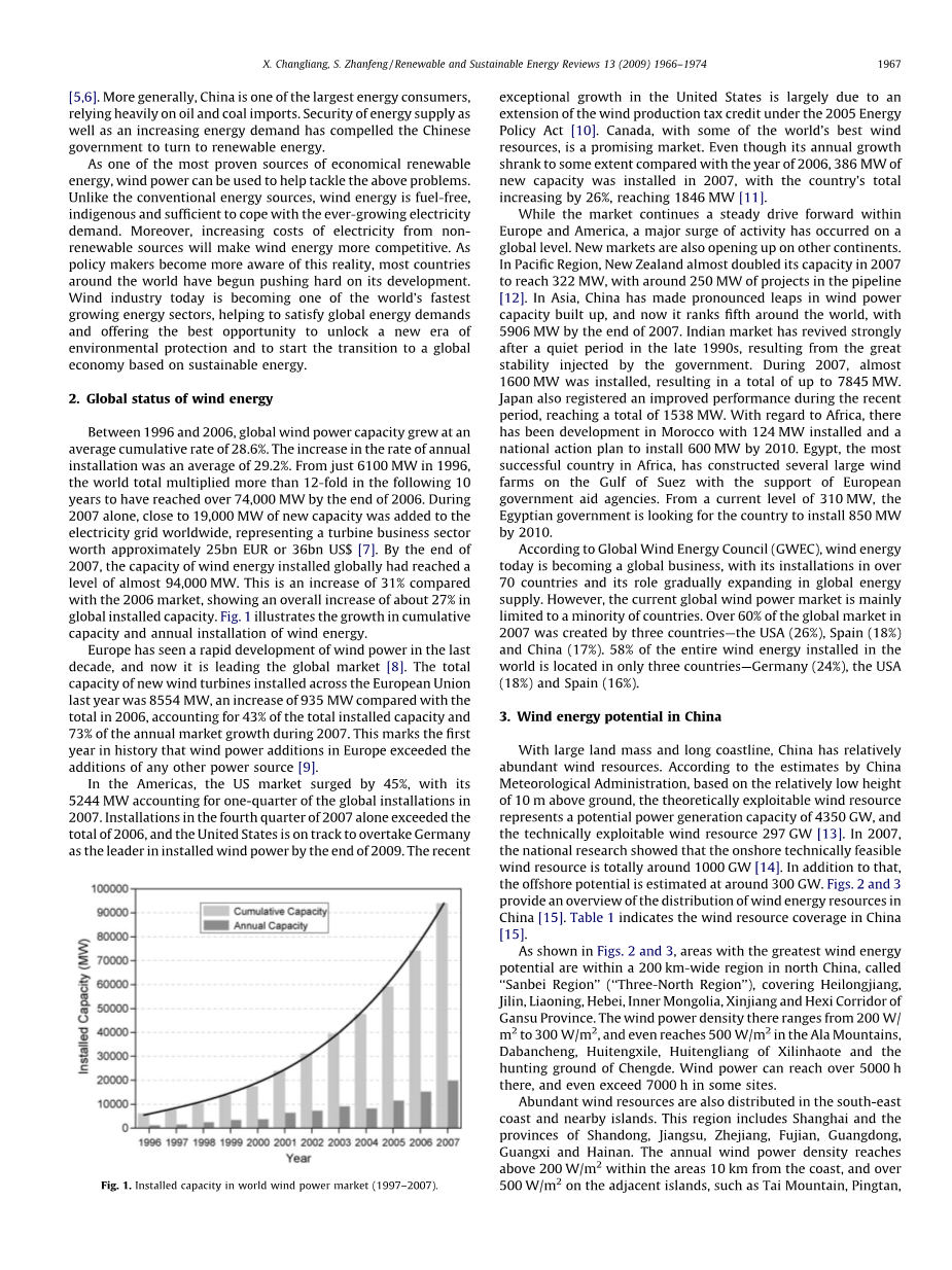 当前中国正在开发风能作为替代能源以平衡能源结构确能源的合理使用。中国政府目前一直控制着风能的开发以建立稳定的长期支持机制,因此中国电力市场被各种激励方案刺激,近年来注册量不断扩张。