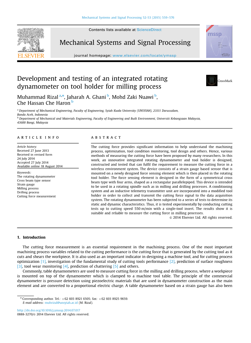 关键词:旋转测力仪、横梁式传感器、应变仪、铣削、钻井过程、切削力测量