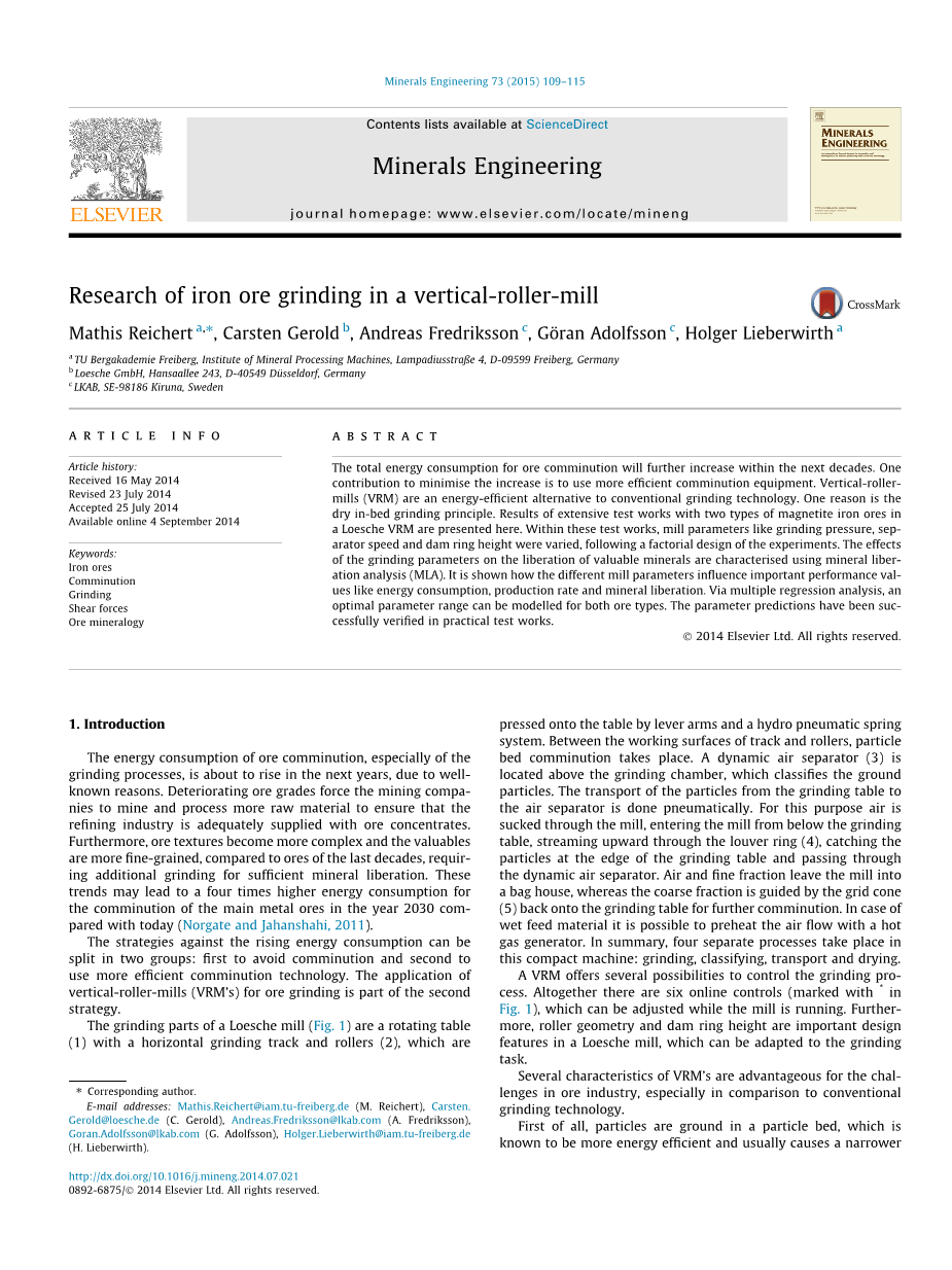E-mail addresses: Mathis.Reichert@iam.tu-freiberg.de (M. Reichert), Carsten. Gerold@loesche.de (C. Gerold), Andreas.Fredriksson@lkab.com (A. Fredriksson), Goran.Adolfsson@lkab.com (G. Adolfsson), Holger.Lieberwirth@iam.tu-freiberg.de (H. Lieberwirth).