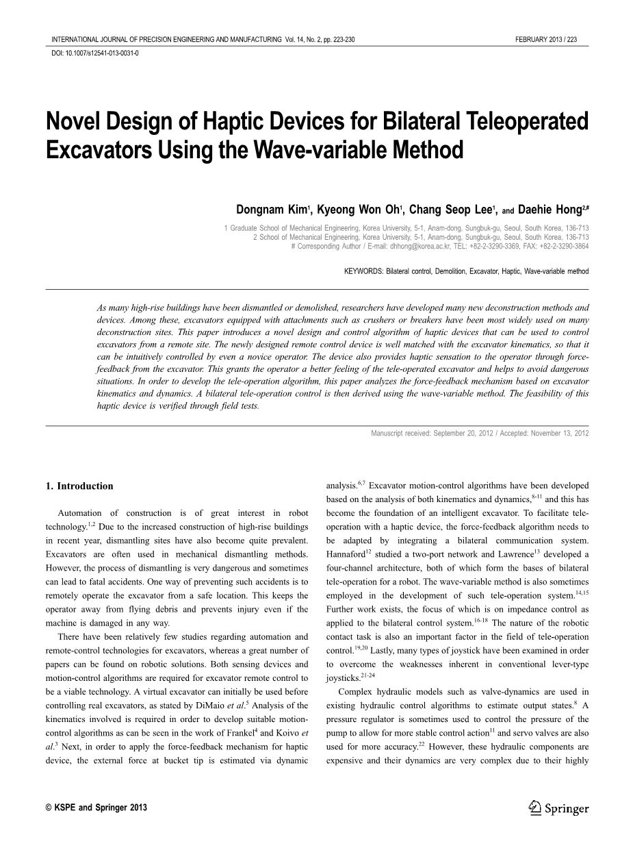 Dongnam Kim 1 , Kyeong Won Oh 1 , Chang Seop Lee 1 , and Daehie Hong 2,#