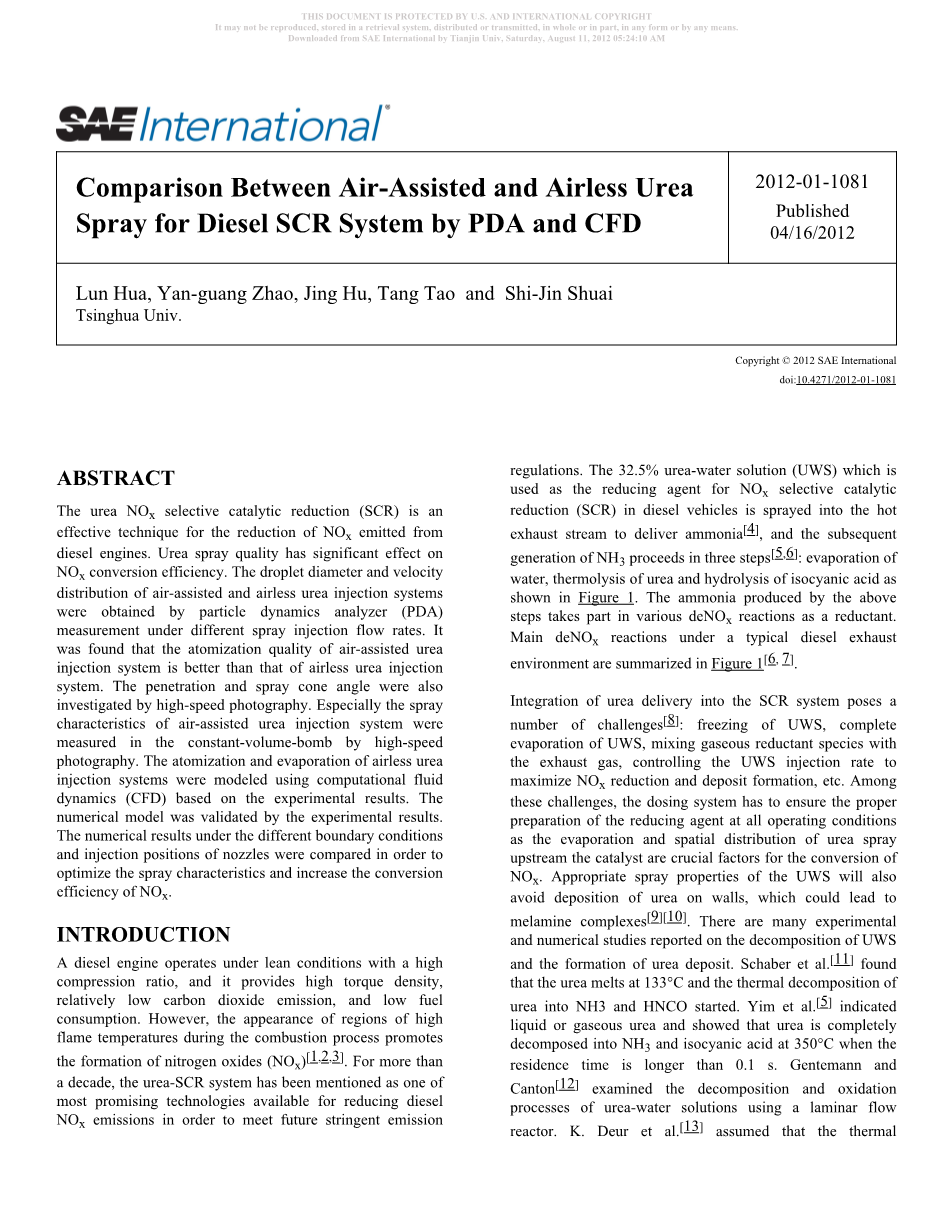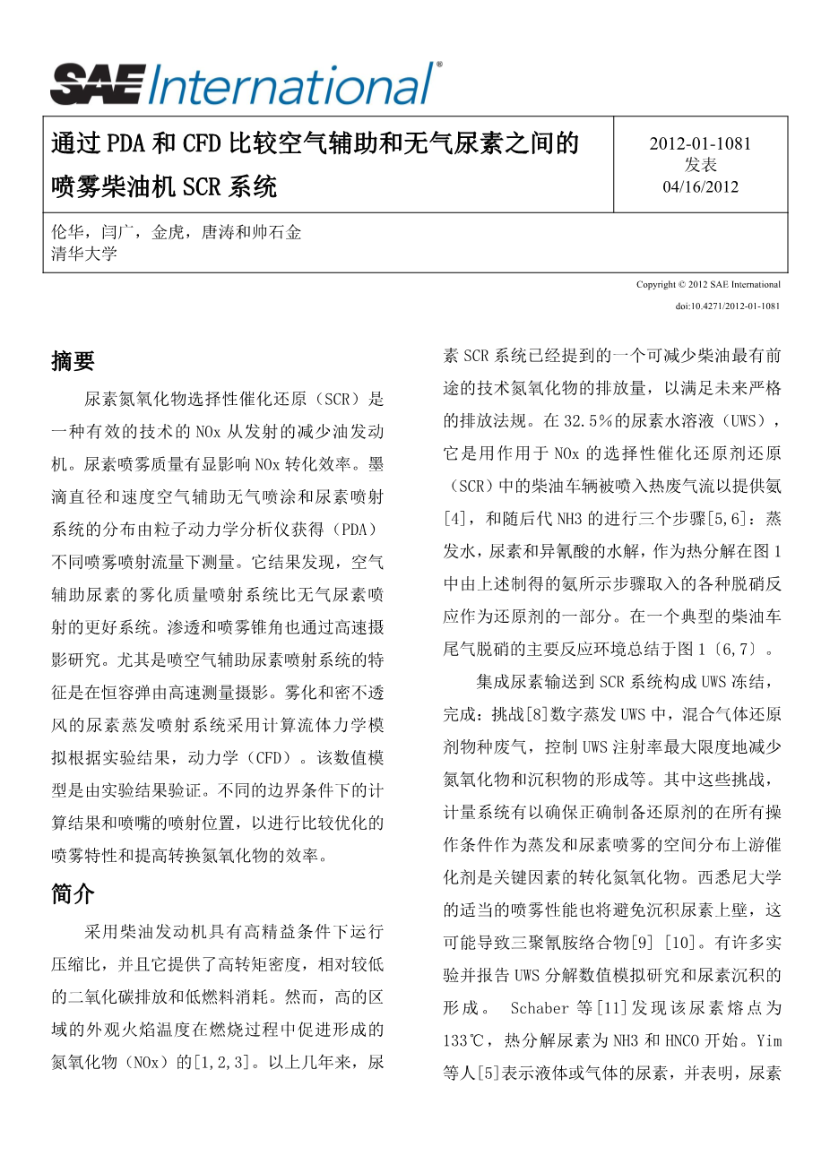 通过PDA和CFD比较空气辅助和无气尿素之间的 喷雾柴油机SCR系统外文翻译资料