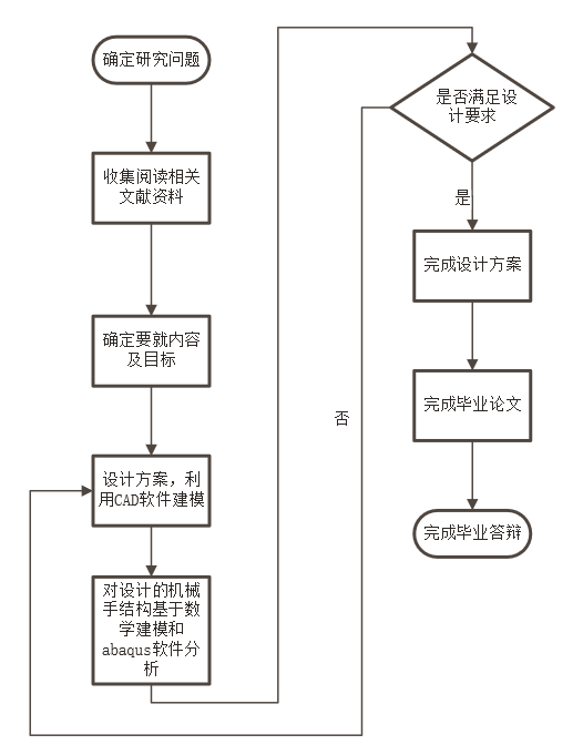 (1)方案调研。阅读相关文献,学了解软体机械手的基本原理和国内外的研究现状。归纳总结已有的研究成果所具有的优缺点,明确研究问题及研究目标。