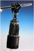 2004年英国Shadow机器人公司研制的Shadow五指手 [6],如图 2所示,外形上跟人手很像,共有19个自由度,具有位置、触觉及压力传感器,利用柔绳及滑轮驱动手指各个关节的运动,具有很高的灵活性,几乎能实现人手所有动作。但缺点是传动的柔绳装置结构较为复杂,驱动装置笨重,运动的柔顺性差,控制动作的精度差,而且能耗也比较大。
