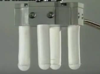 为了解决柔绳驱动中存在的损耗问题及机械手柔顺性的问题,气动驱动机械手的方式开始大量被研究。日本东芝公司设计的Toshiba软体手[7],如图 1所示,基本能实现抓取、移动物体和拧螺钉等简单动作,而且柔顺性也比较好[8],其中,FMA 既是手指的一部分,又是驱动元件。Toshiba 灵巧手虽然基本解决了柔顺性问题,但控制系统十分复杂,并且在执行重载任务时手指易发生侧向弯曲,与柔绳驱动相同,该气动驱动的机械手同样需要笨重的辅助装置。