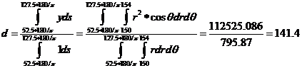 。因此圆弧对应的圆心离叶片重心距离为141.4mm,圆弧最大半径为154mm,可求出重心点与叶轮中心点的距离为170.32mm。