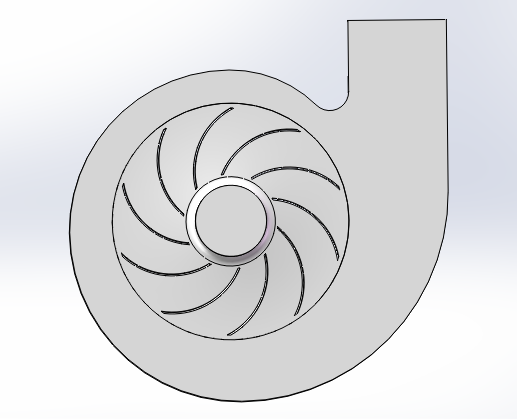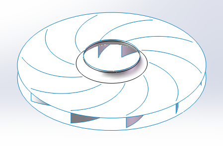 (1) design of the centrifugal impeller, and determine the size, structure and carbon fiber materials type of the centrifugal impeller.