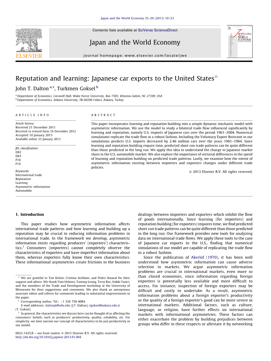 学习和建立声誉:日本汽车出口美国外文翻译资料