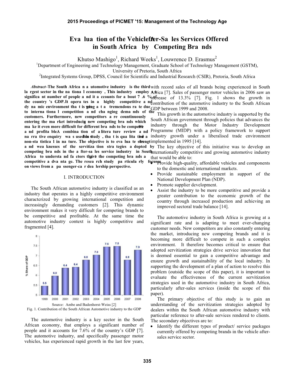 南非的汽车工业正以显著的速度增长,并正在适应不断变化的客户需求。新的竞争对手也不断进入市场,引入新的竞争品牌,在这样复杂的环境中竞争变得越来越激烈。因此,确保采用的服务战略推动服务创新至关重要,这被认为是获得竞争优势和确保当地产业的增长和可持续性的关键。