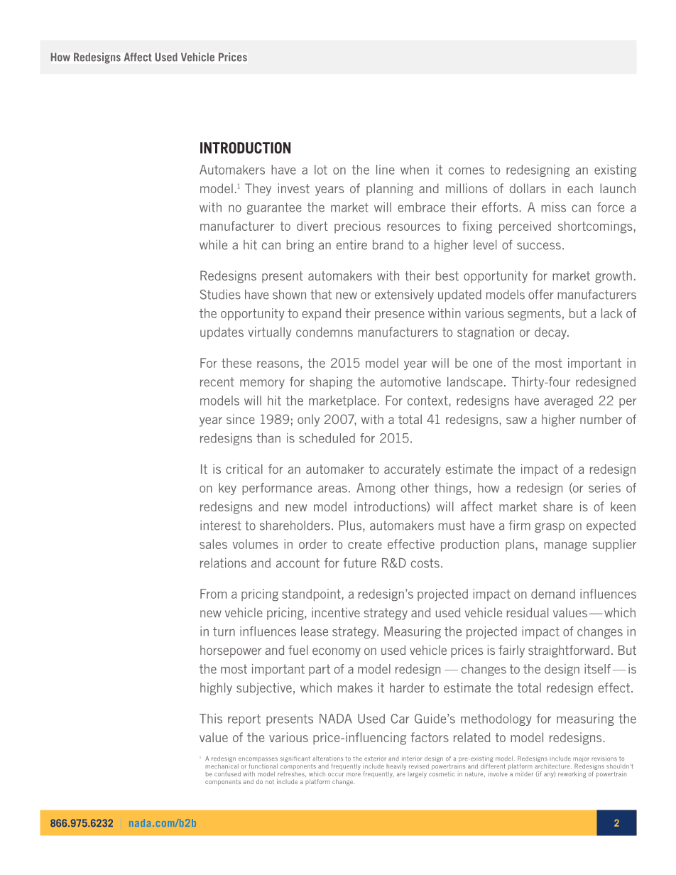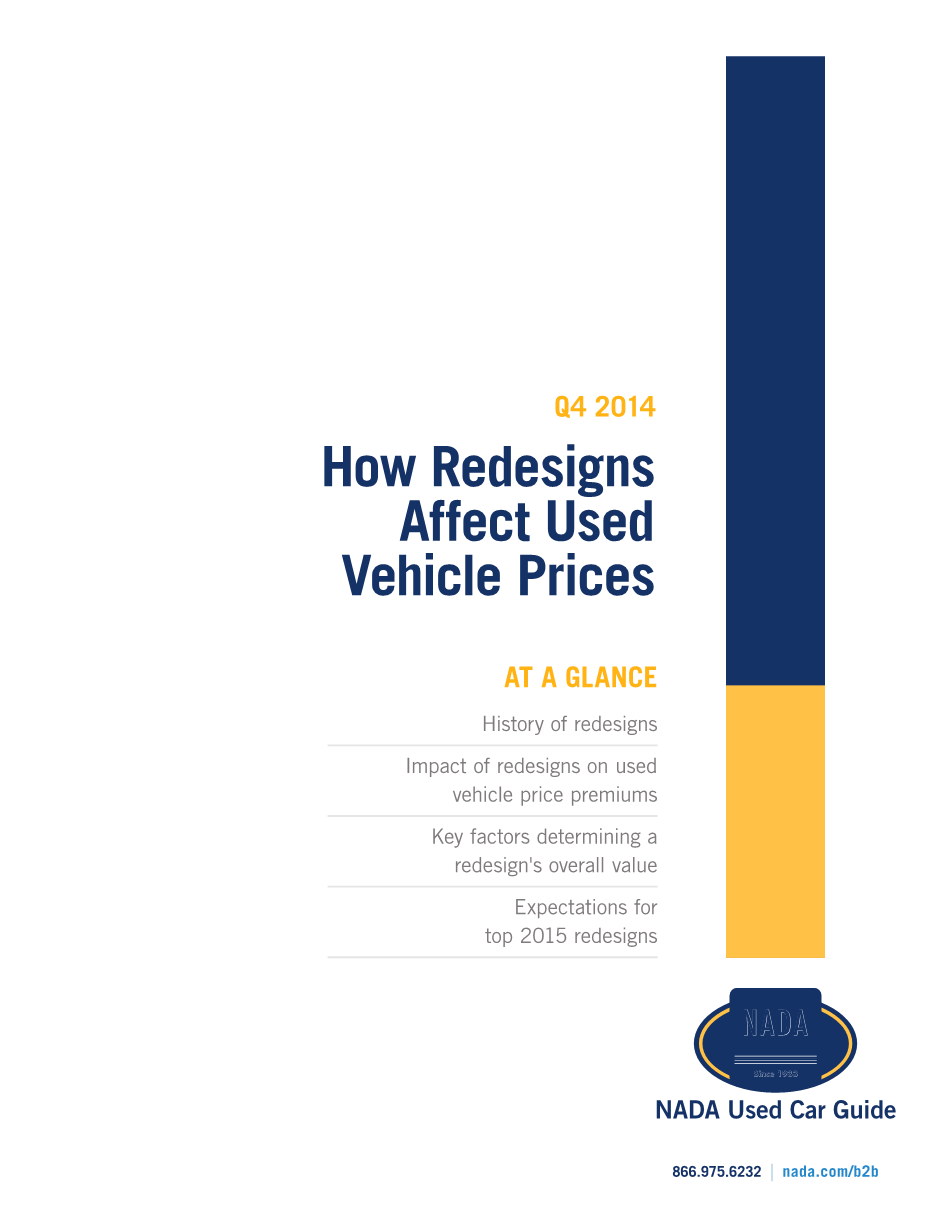本报告介绍了NADA二手车指南的测量方法与模型重新设计相关的各种价格影响因素的价值
