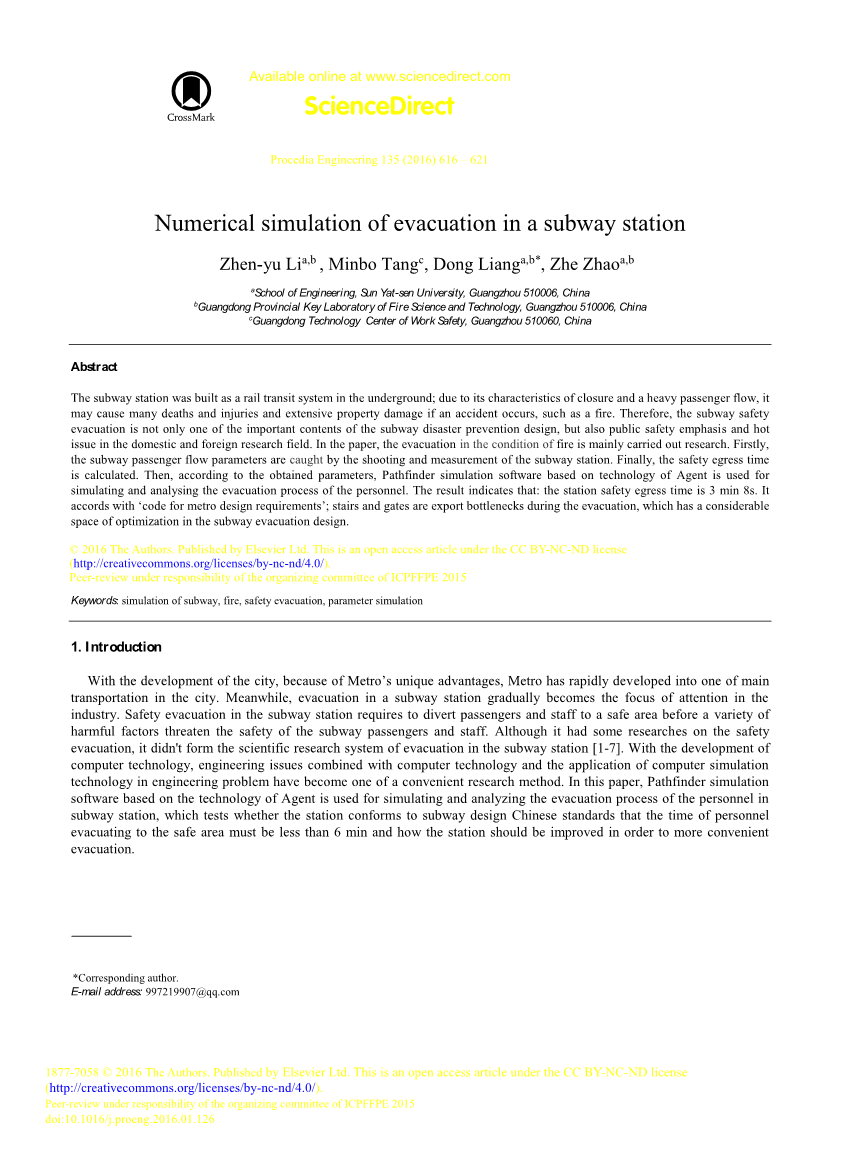 [1]梁海君,徐伟斌,2012.《地铁火灾疏散性能分析》,沈阳锦州大学自然科学学院学报28卷,p.702 - 709.(中文)