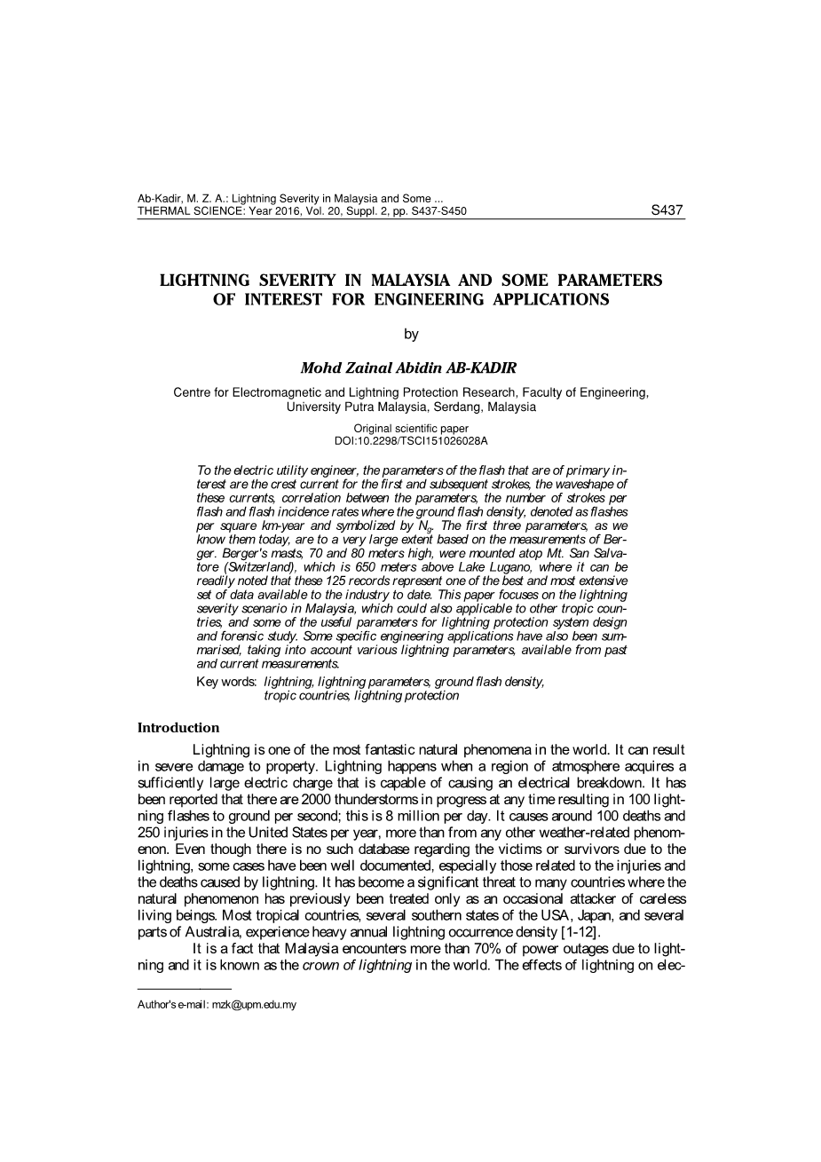 闪电在马来西亚的严重程度和对工程应用一些参数外文翻译资料